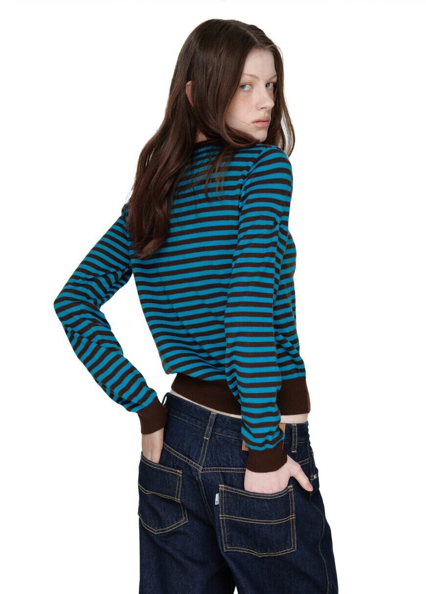 ★Hearts2Hearts ユハ 着用!!【SUNBURNPROJECT】Stitch Stripe Knit, BLUE