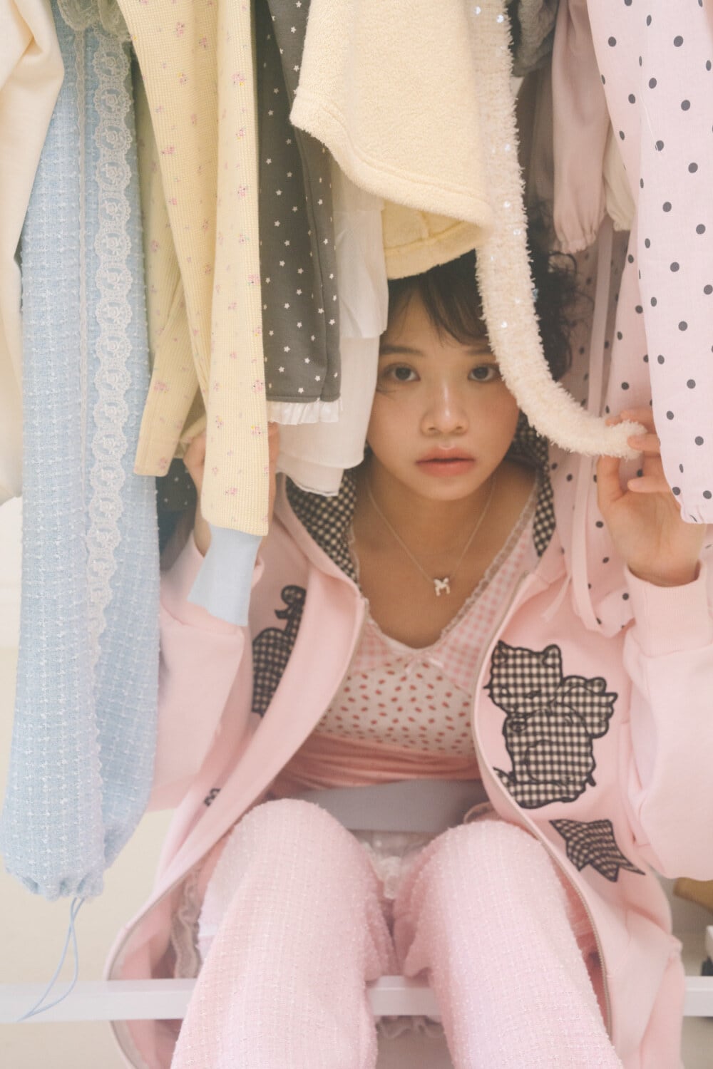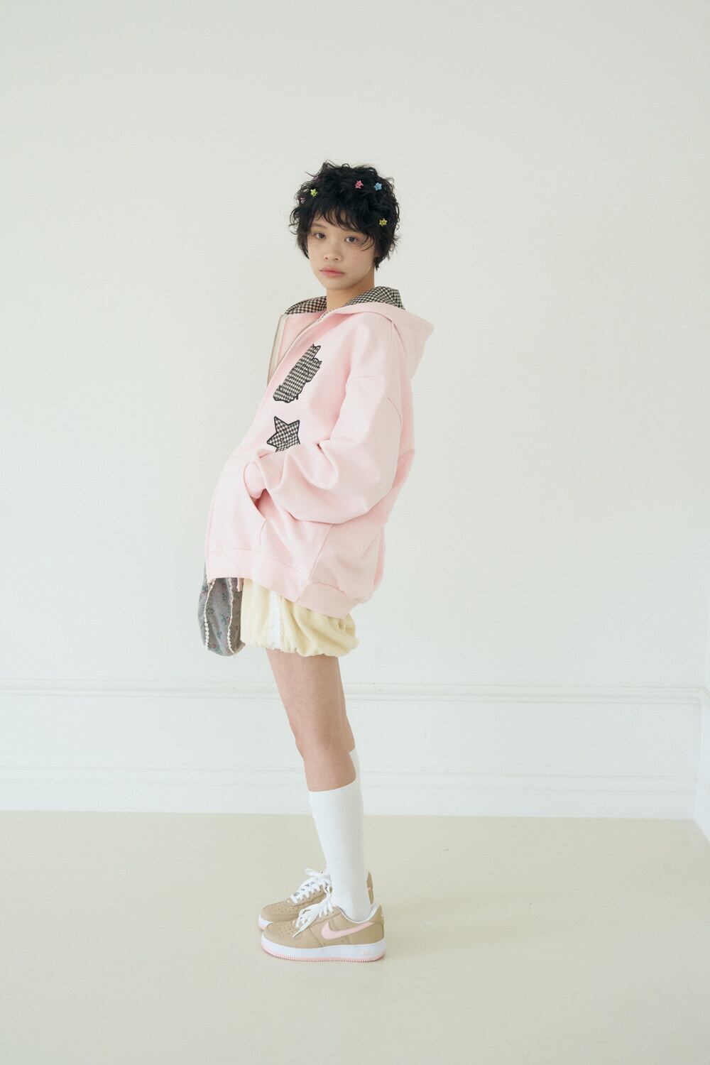 ★ILLIT ウォンヒ 着用!!【SHAKIRI】KIRING CHECK PATCH HOODIE (PINK)