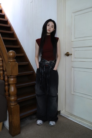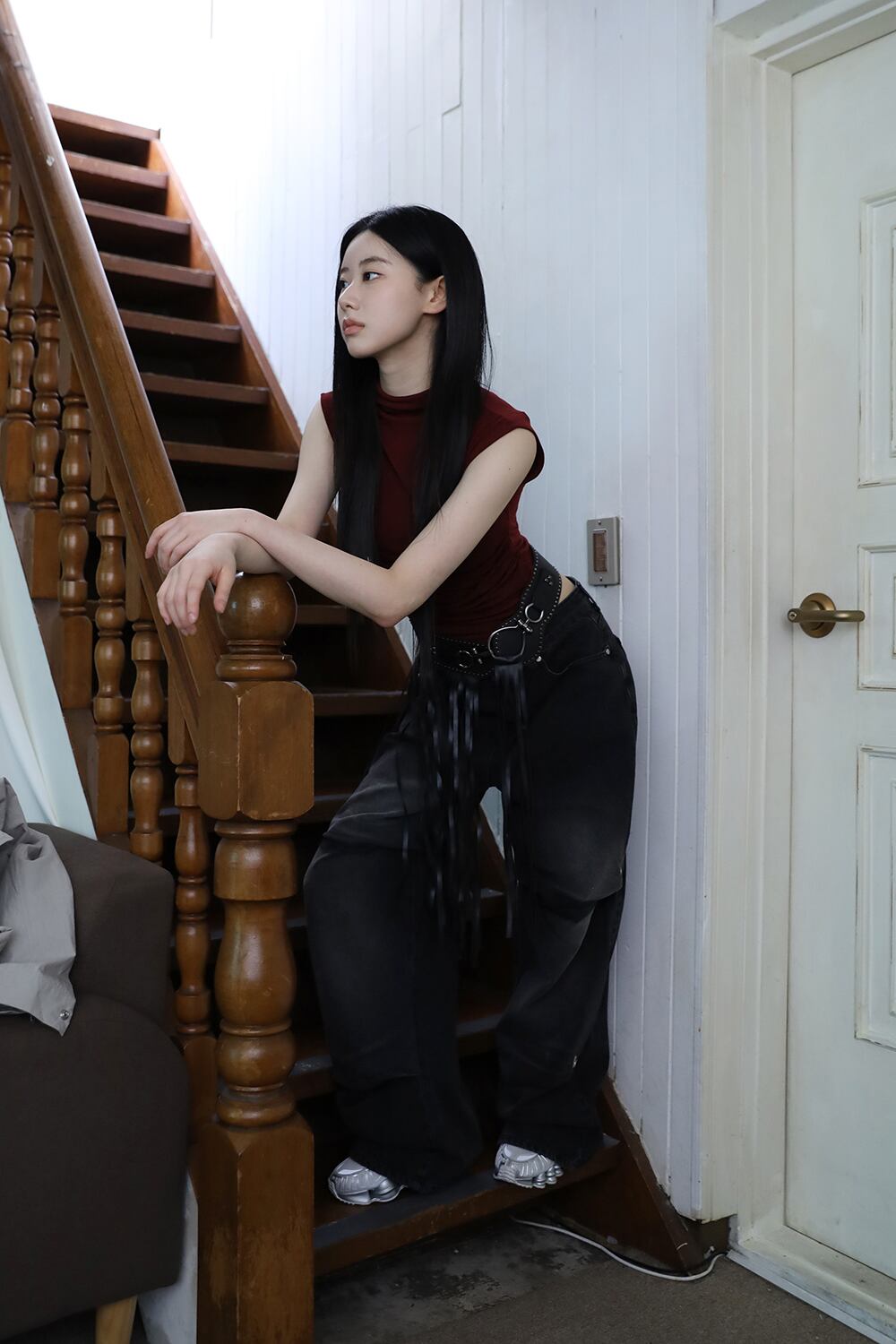 ★LE SSERAFIM カズハ 着用!!【COLOR IN ID】Eilet Pintuck Black Denim