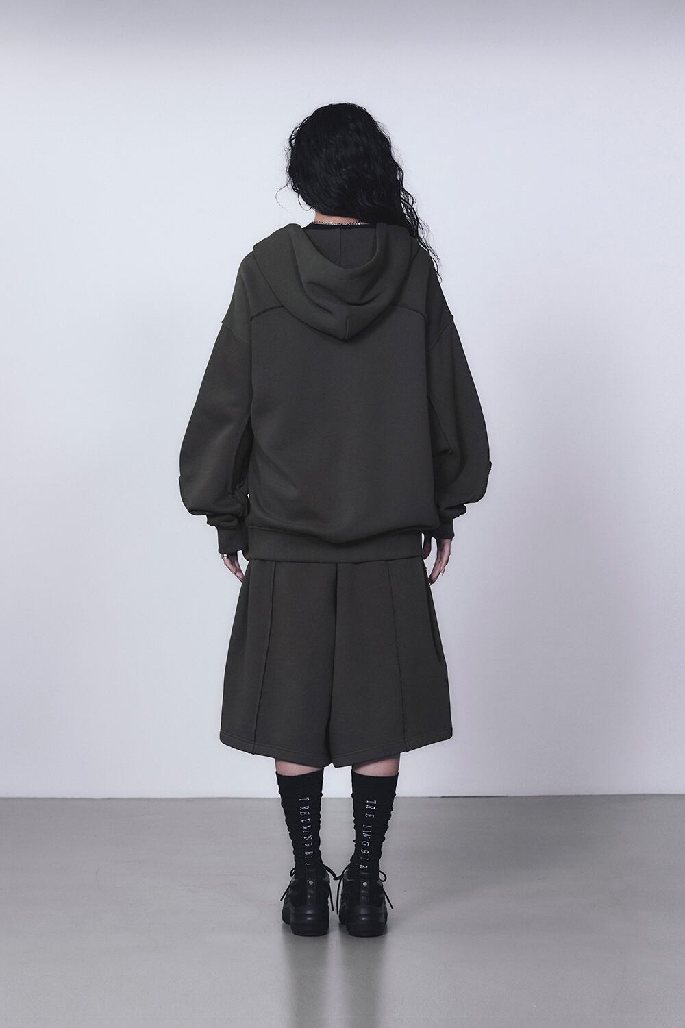 - サイドファスナークロージングでアウトフィット変形が可能なスウェットハーフパンツ