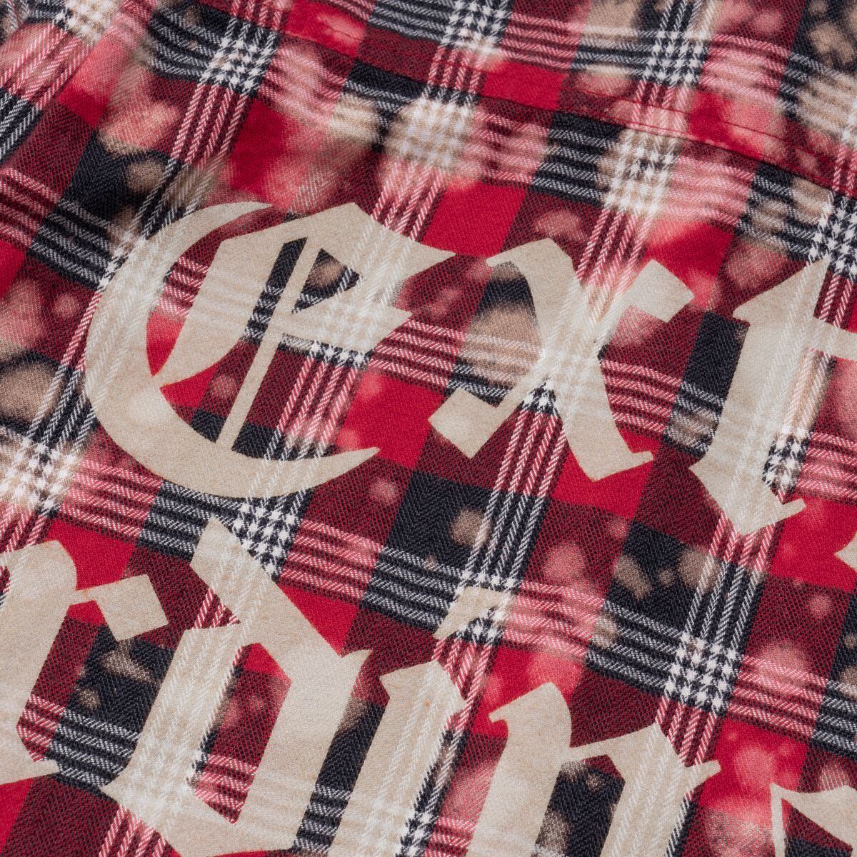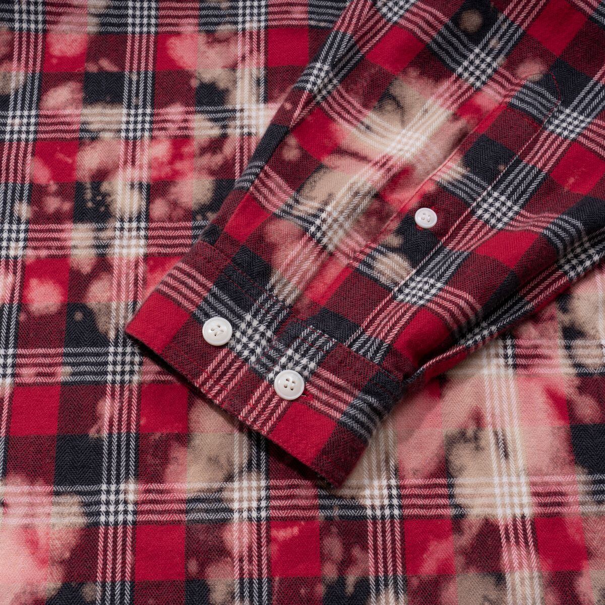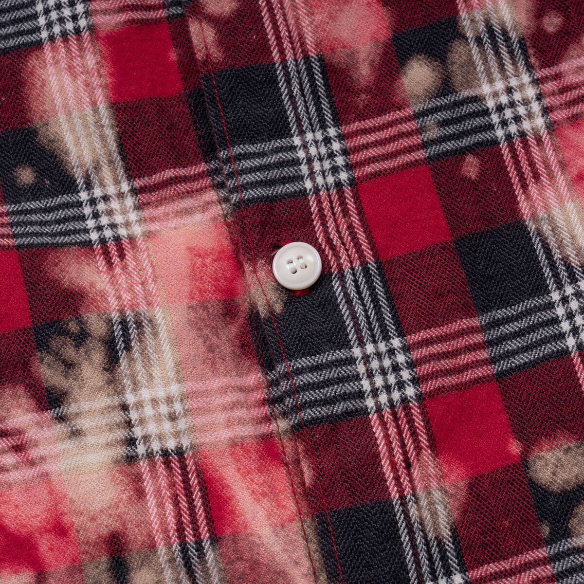- ハンドメイド技法のブリーチド(発炎)技法がポイントのチェックシャツ。 胸元ポケット