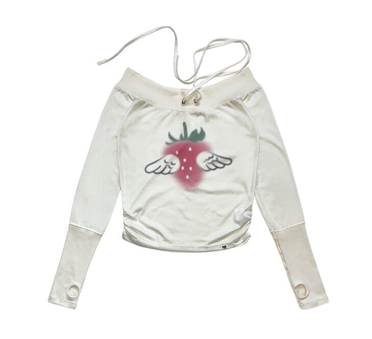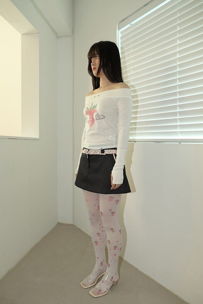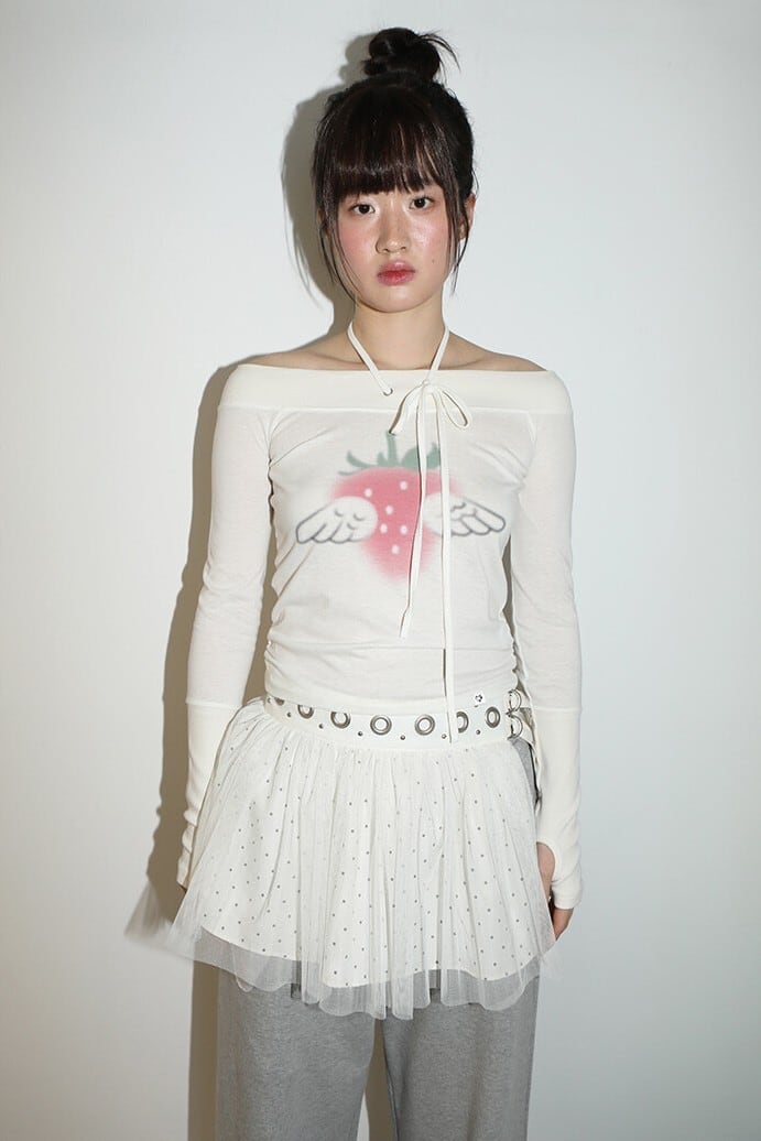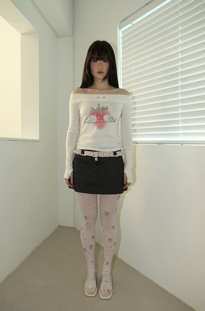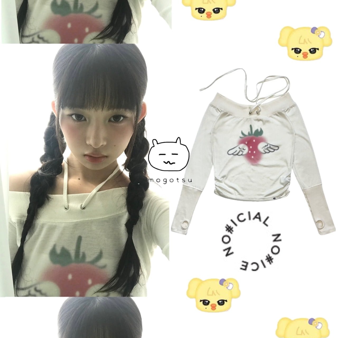 [Pre-order ships 4/23]★IVE レイ 着用!!【NOFFICIALNOFFICE】STRAWBERRY ANGEL OFF SHOULDER TOP IVORY