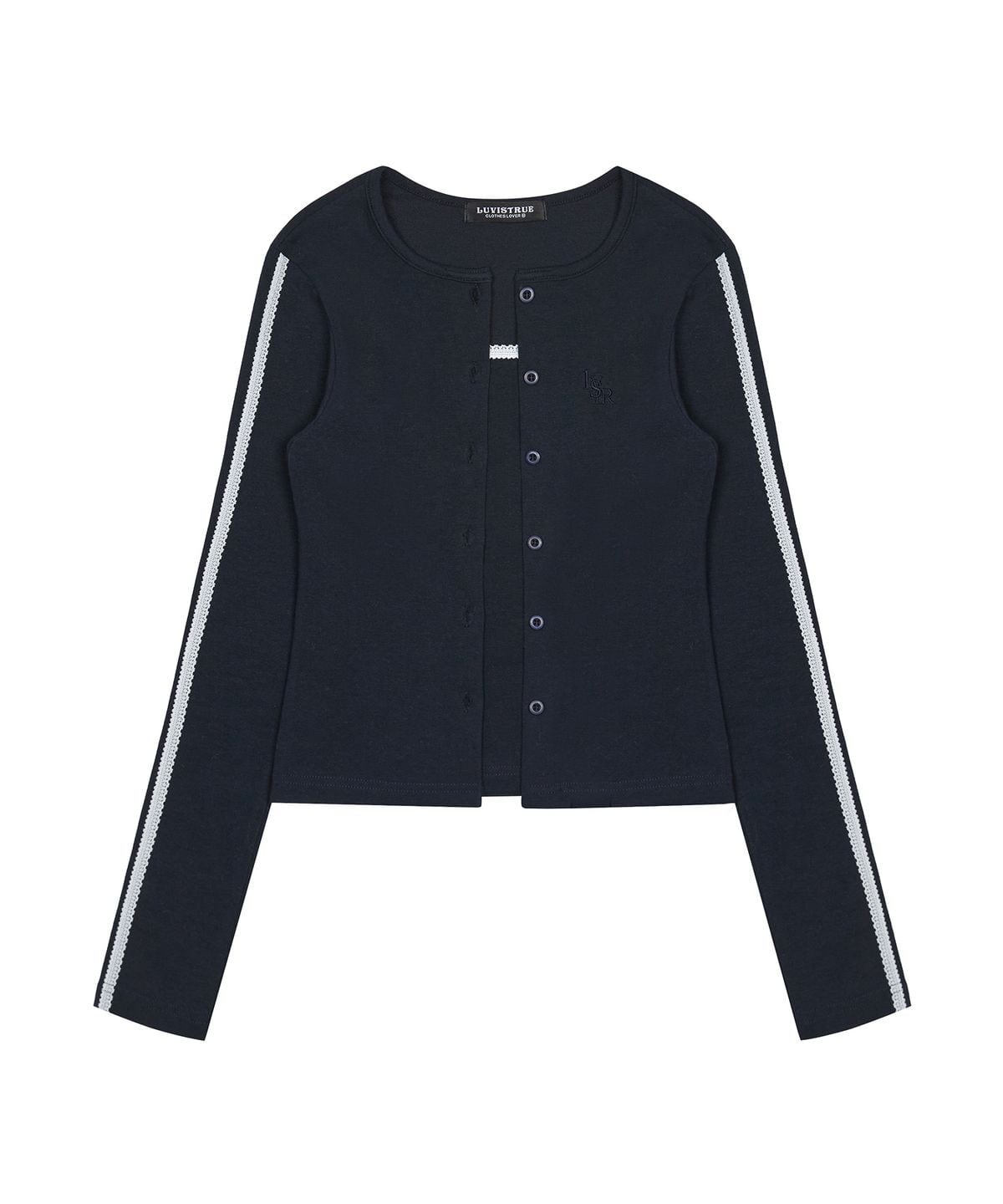 ラブレターズのシグネチャーロゴ「LVTR」を刺繍でポイントに加えました。