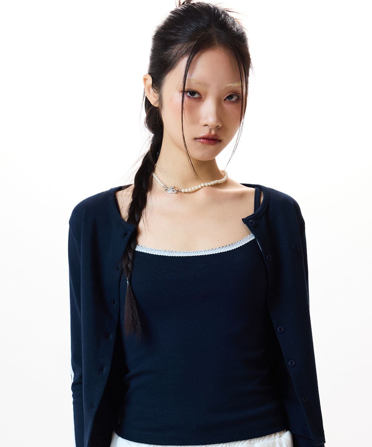 LVTR Frill Cardigan Sleeveless Set(Navy)