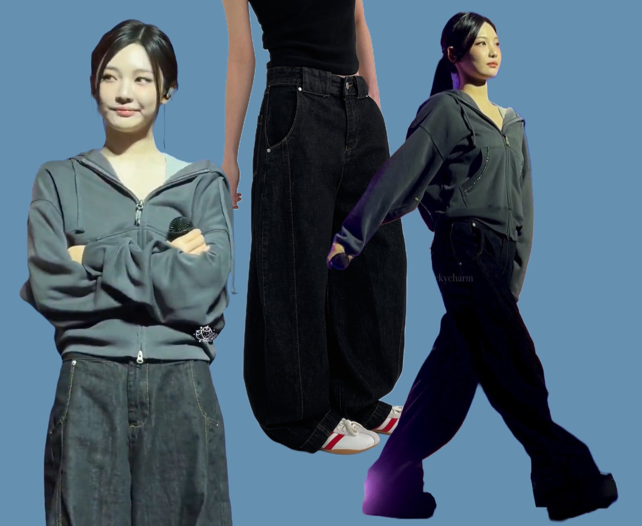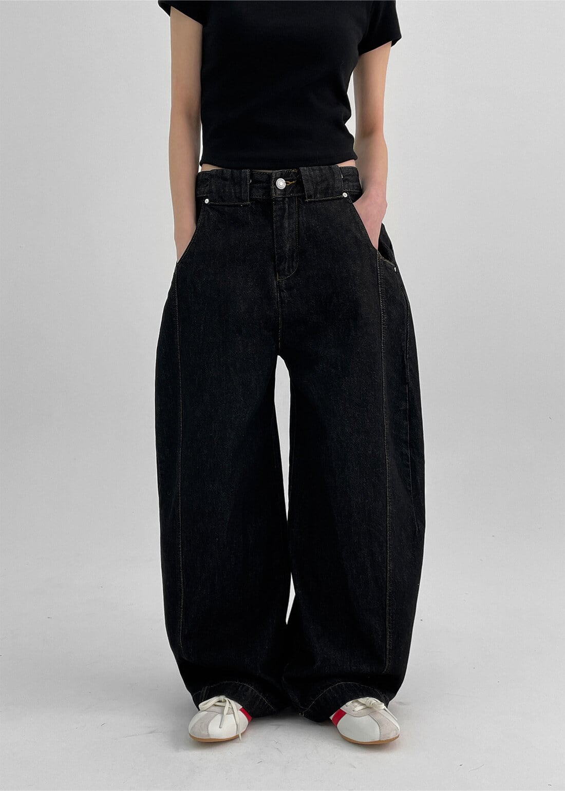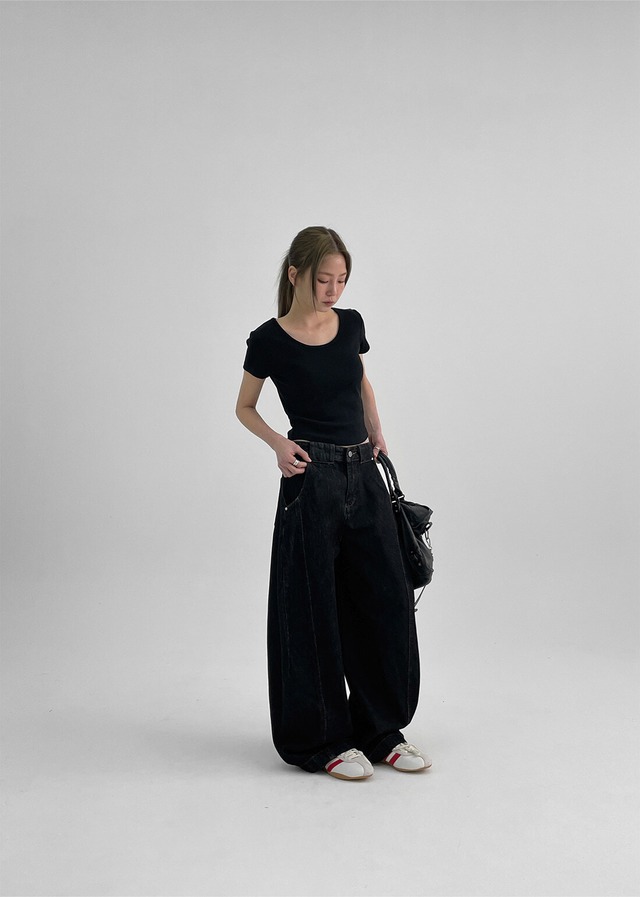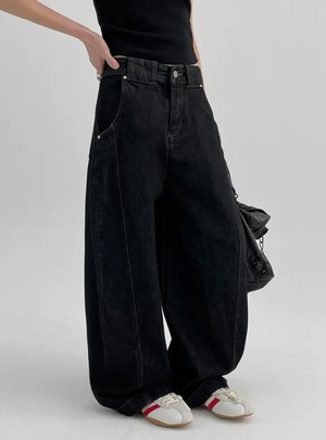 ★aespa ニンニン 着用!!【BLACKUP】Bermans Curved Wide Balloon Denim Pants