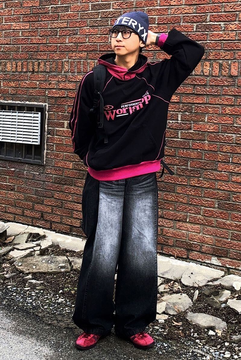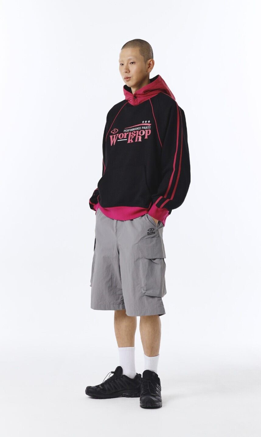 ★Hearts2Hearts イアン 着用!!【TRAVEL】Workshop Line Raglan Nylon Mix Hoodie Black