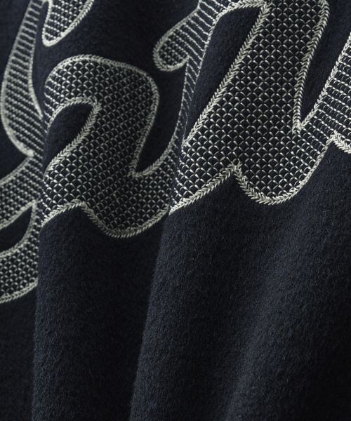 胸元には立体的な刺繍で表現された「S」ロゴアップリケがデザインのポイント。