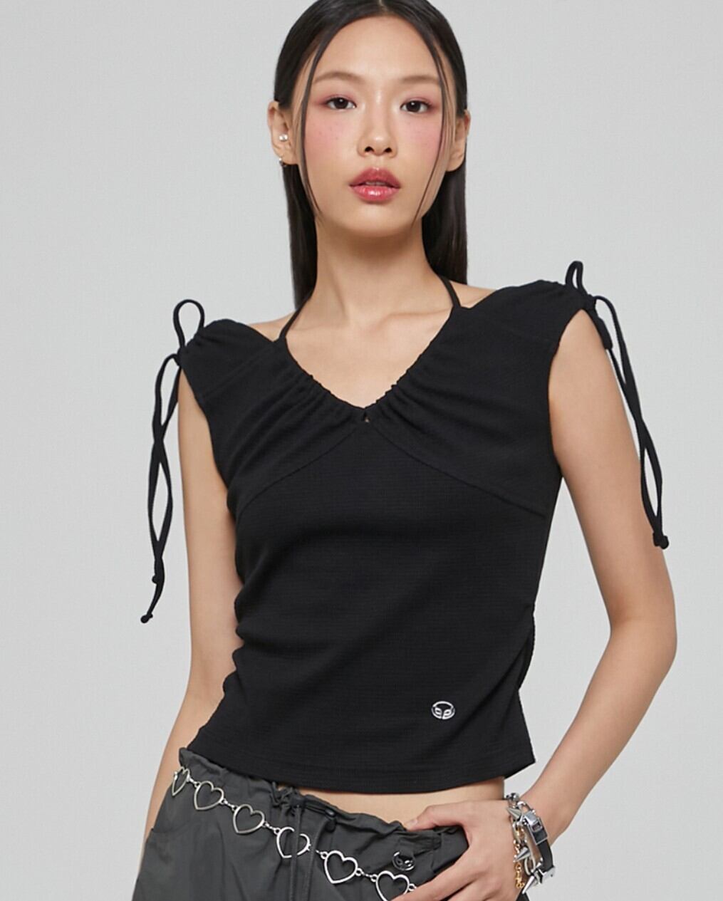 ★aespa ニンニン 着用!!【lalafox】STRING HALTERNECK T-SHIRT BLACK