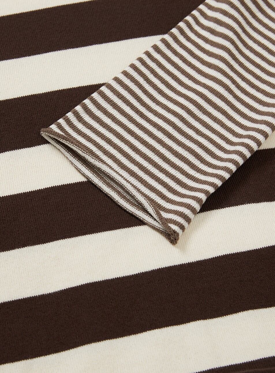 ★LE SSERAFIM チェウォン 着用!!【MARGESHERWOOD】STRIPE LAYERED KNIT TOP_brown/ivory
