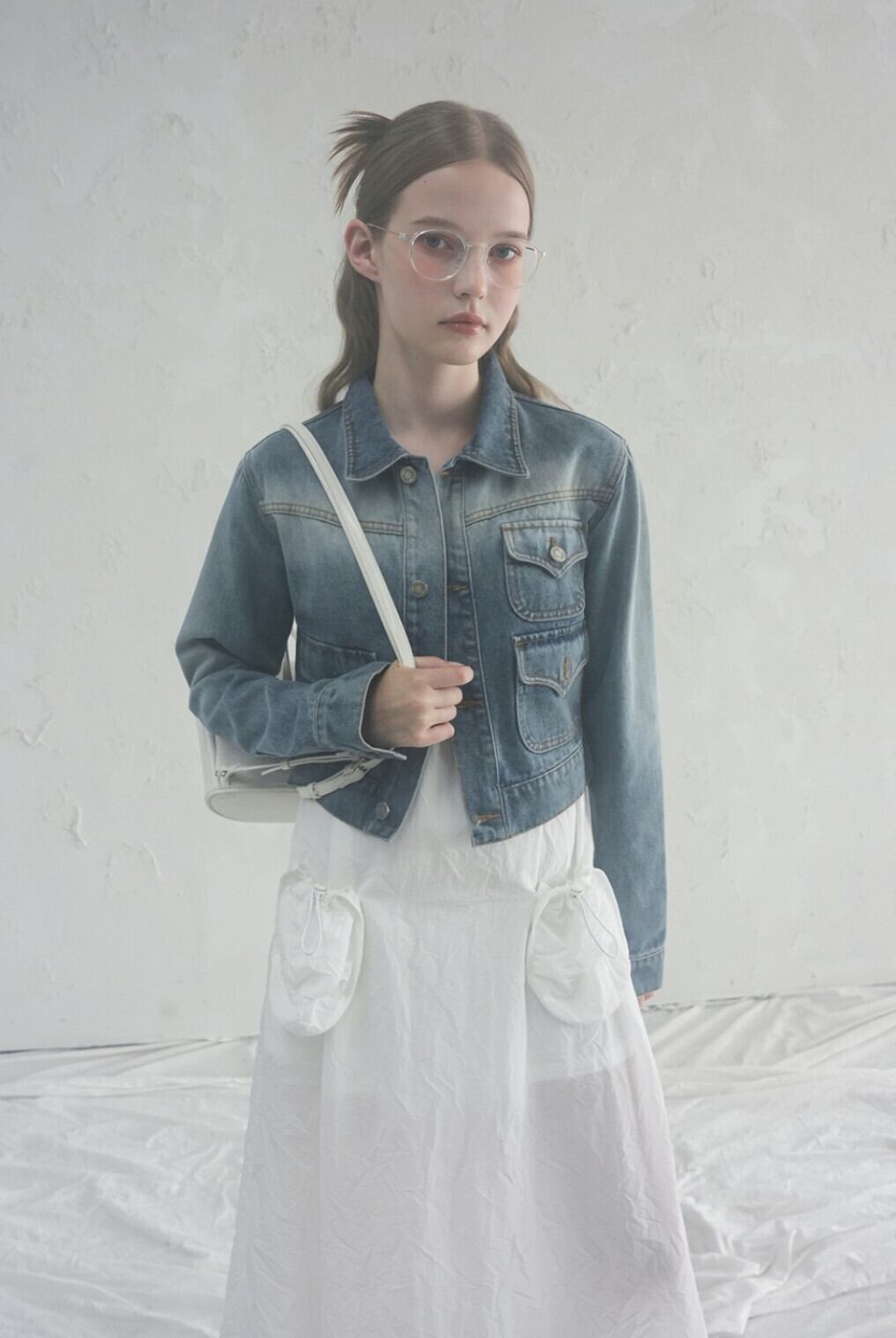 ・フロントの大きなポケットがアクセントのデニムジャケット