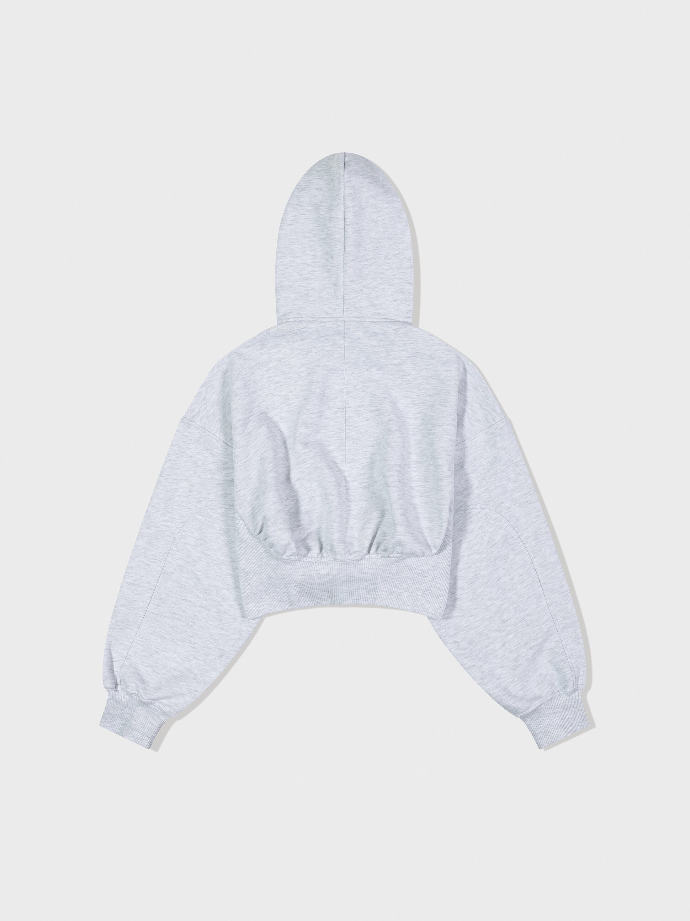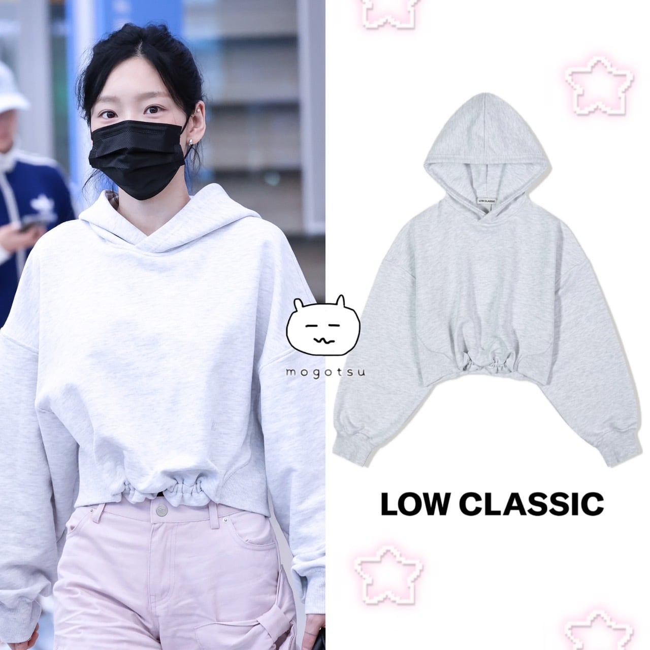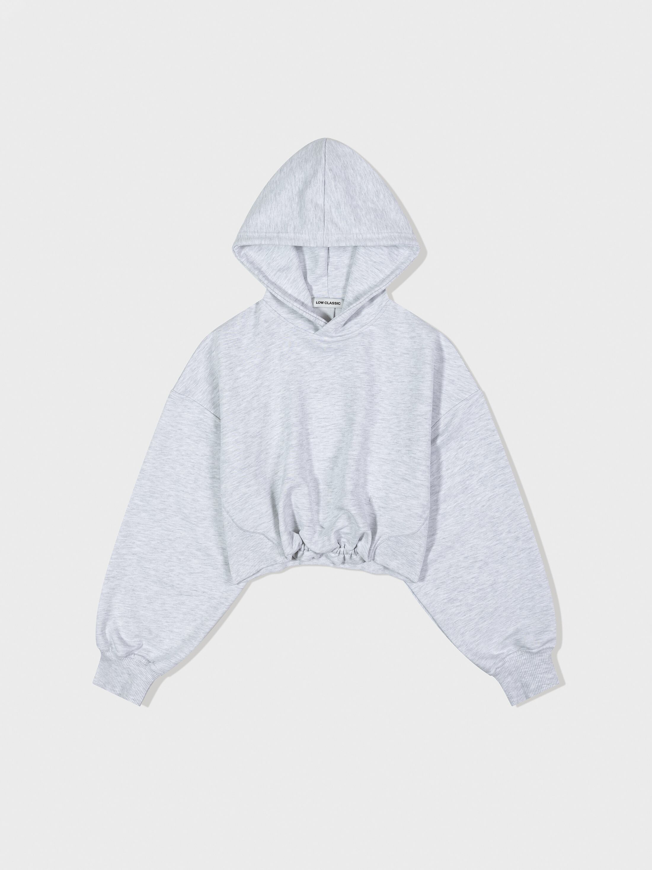 ★テヨン 着用!!【LOW CLASSIC】BACK RIB CROP HOODIE_MELANGE GREY