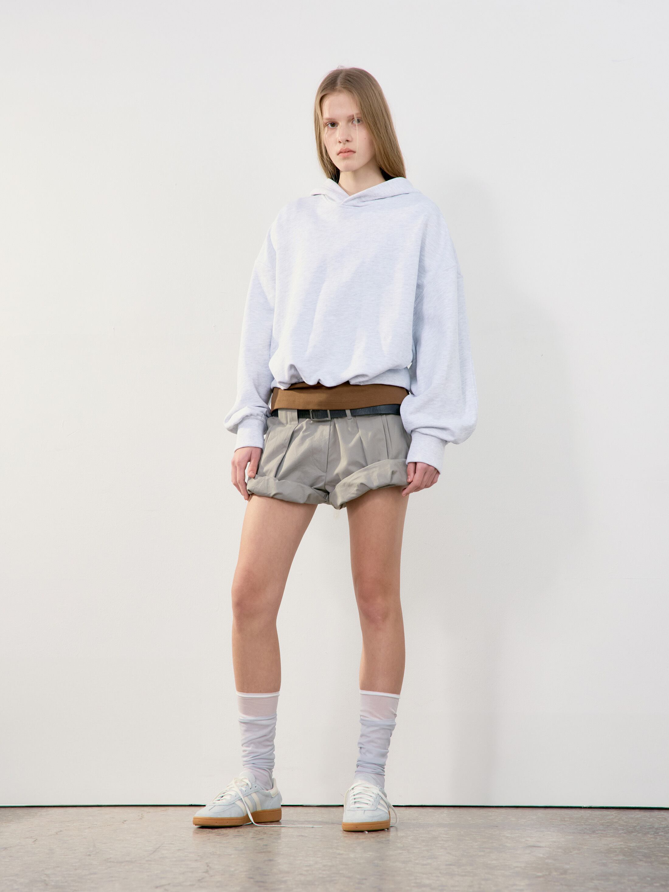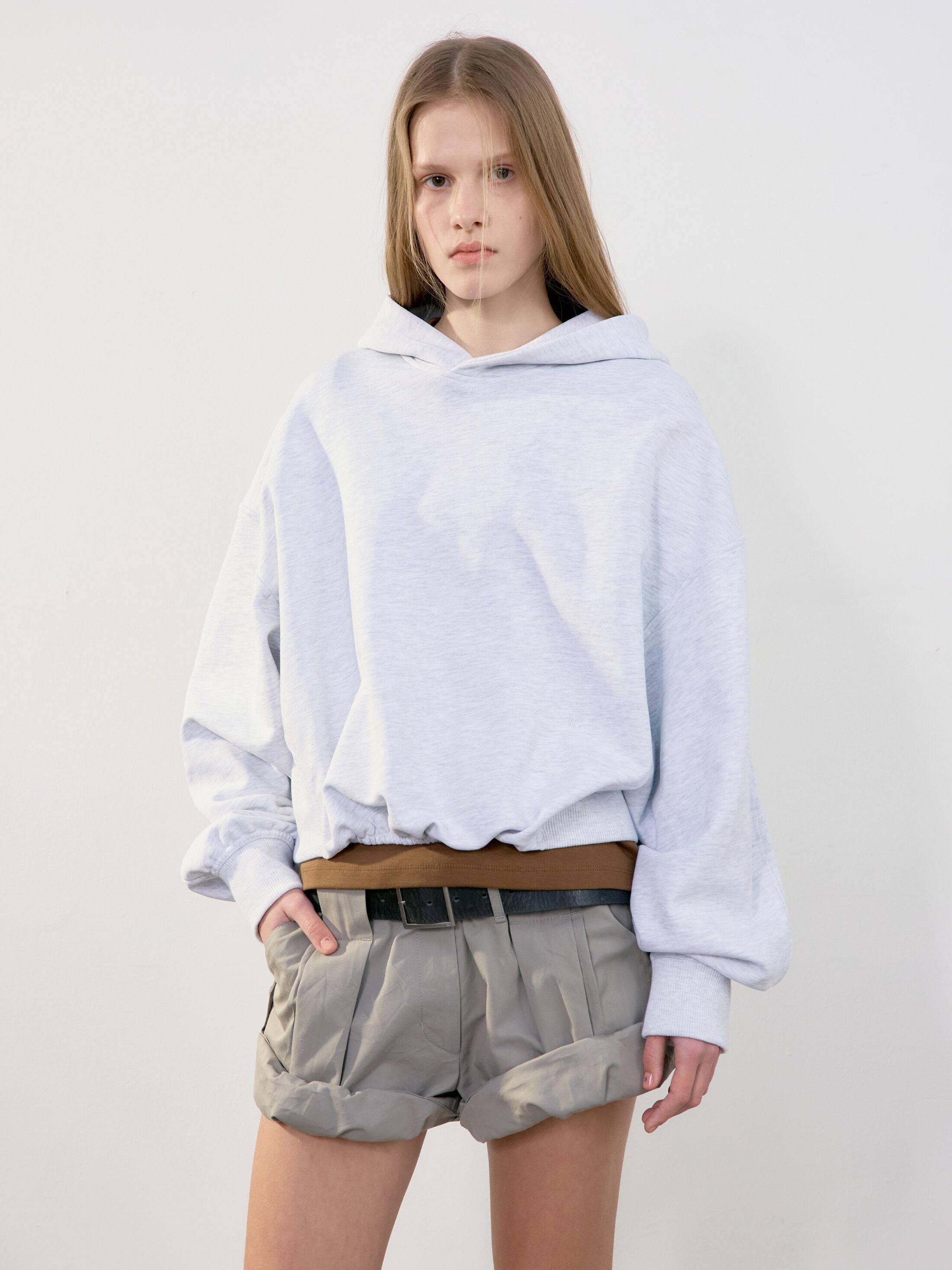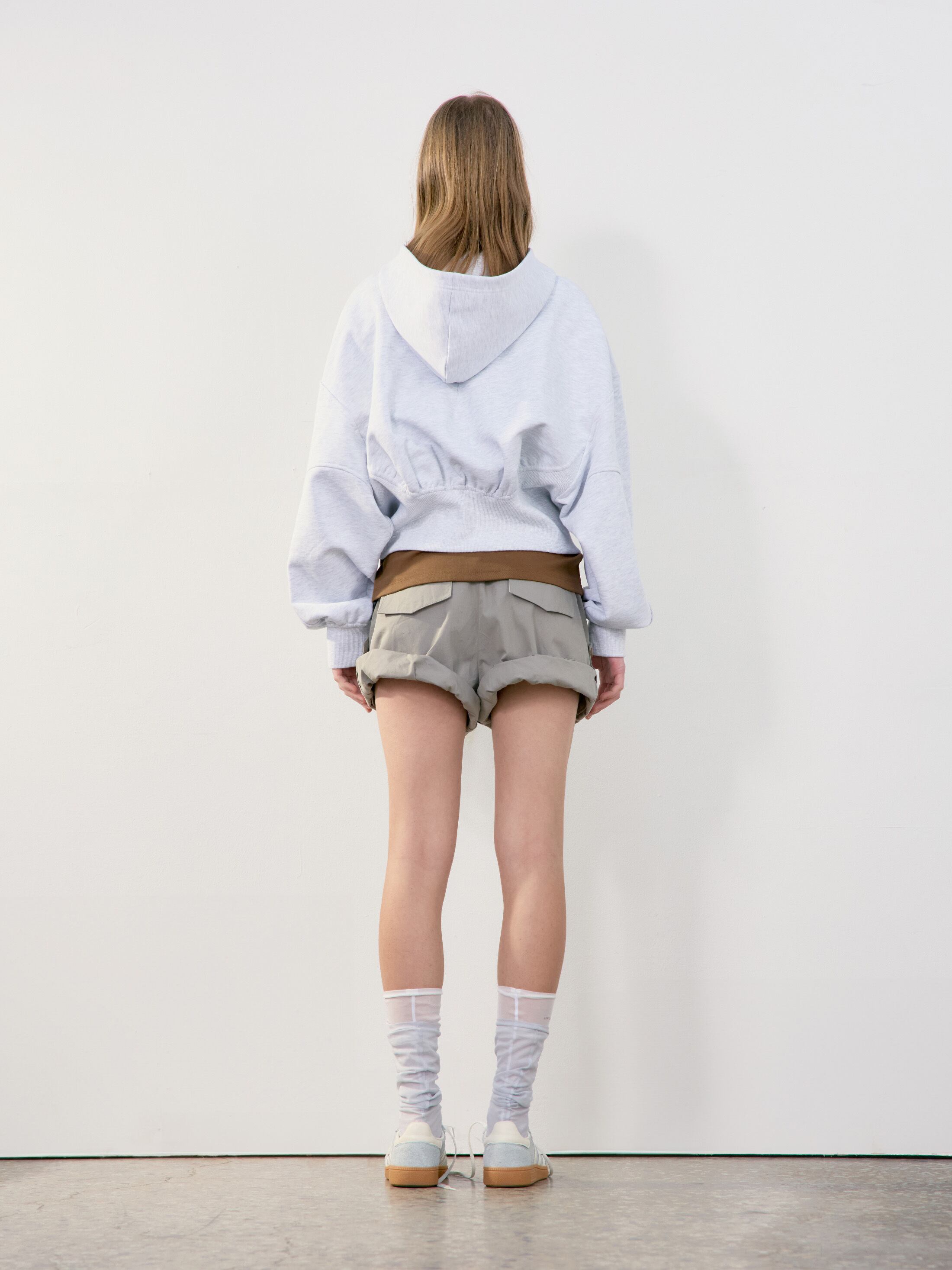 ★テヨン 着用!!【LOW CLASSIC】BACK RIB CROP HOODIE_MELANGE GREY