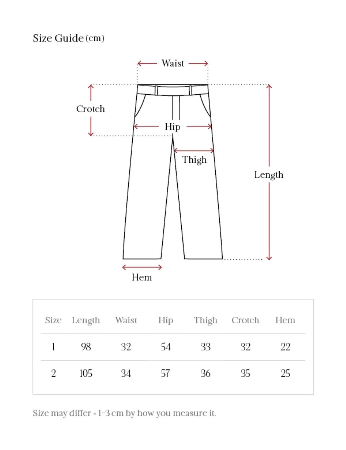 | サイズ | 総丈 | ウエスト | ヒップ | 太もも | 股上 | 裾幅 |