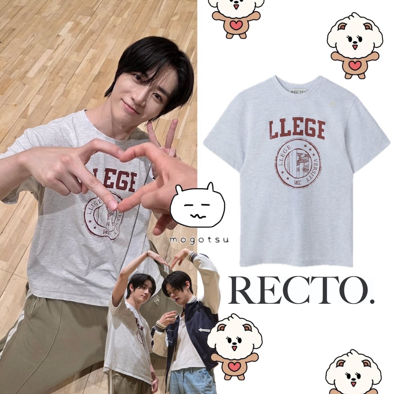★TXT ボムギュ 着用!!【RECTO】LLEGE LOGO T-SHIRT (MELANGE GREY)