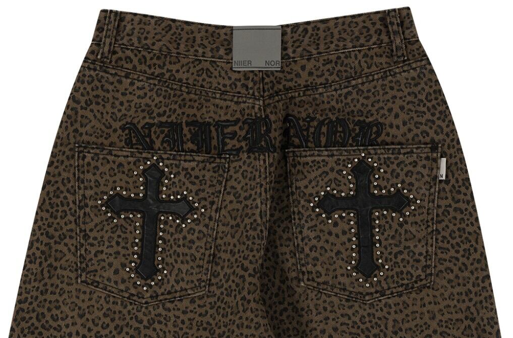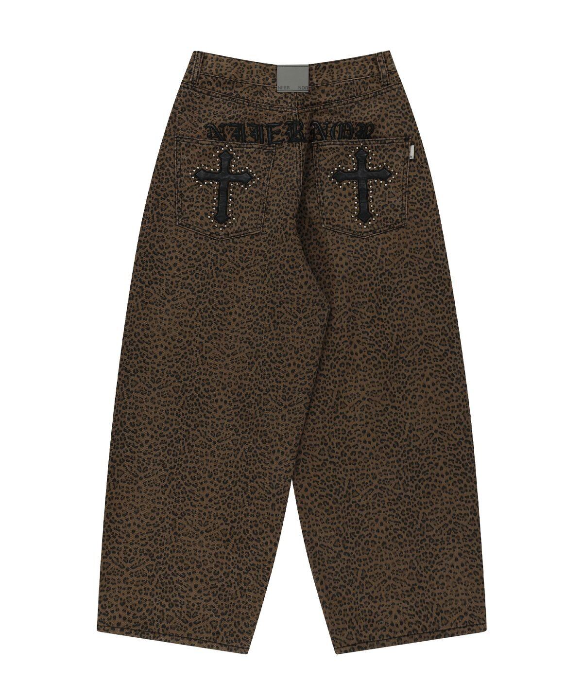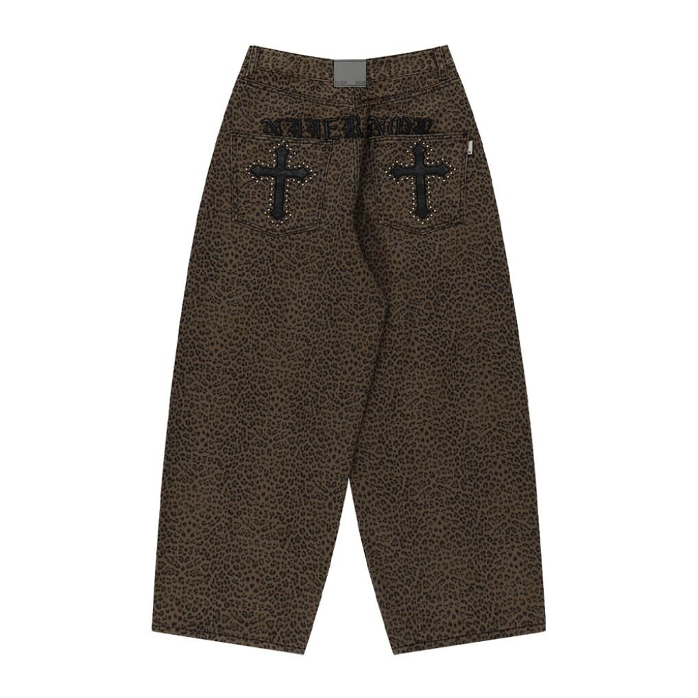 在庫少なめ!!★KISS OF LIFE ハヌル 着用!!【NIIER NOR】BACK-CROSS DAMAGED WIDE PANTS_LEOPARD