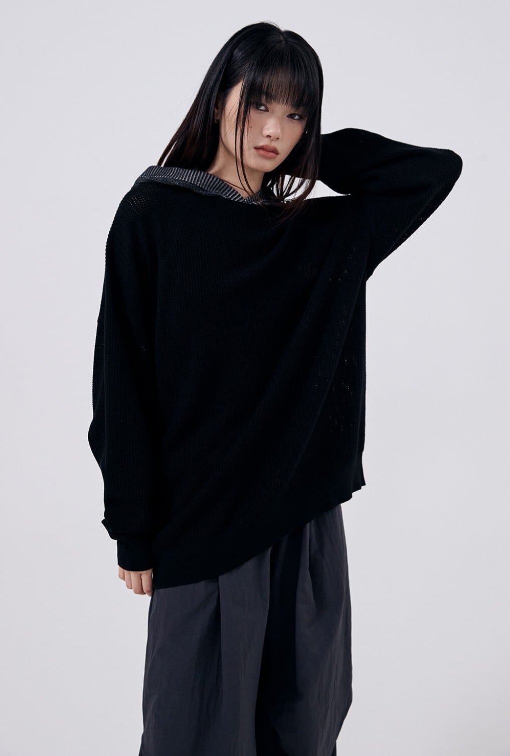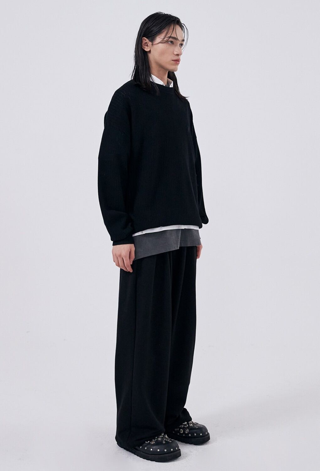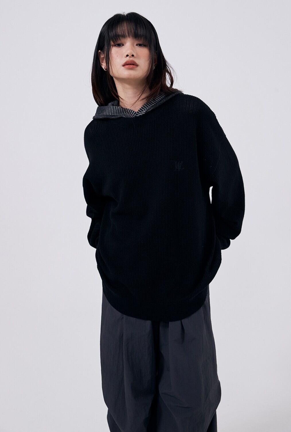 ★SEVENTEEN ウォヌ 着用!!【WOOALONG】Signature round scassi knit - BLACK