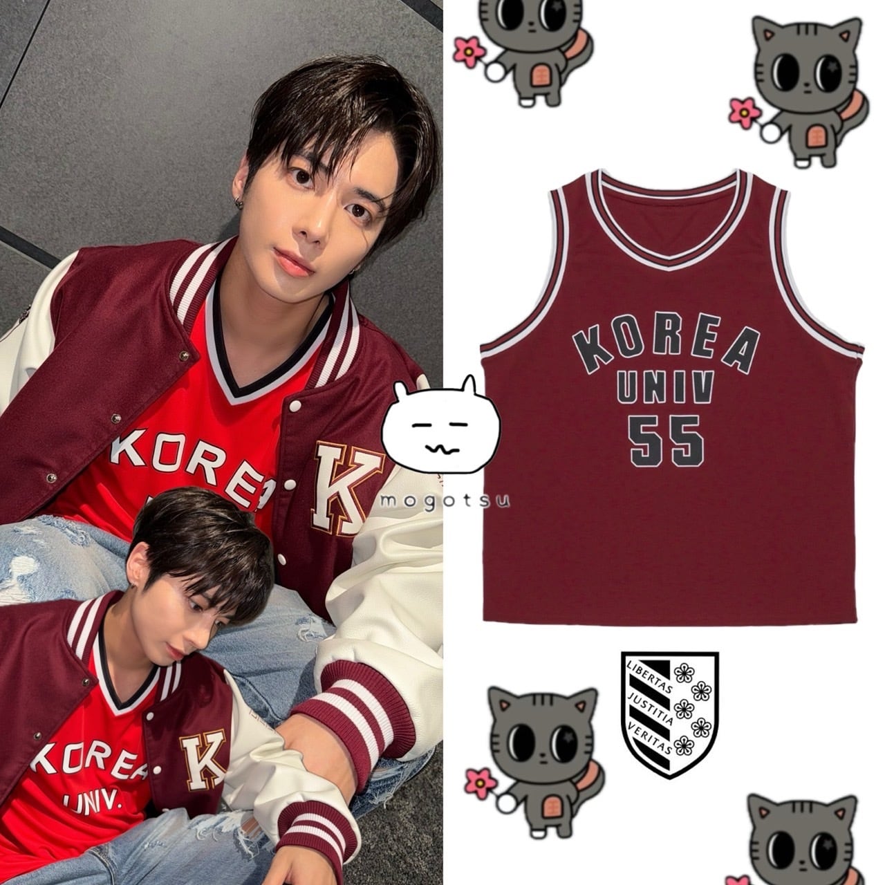 ★TXT テヒョン 着用!!【KOREA UNIVERSITY】Korea University Basketball T-Shirt (Crimson)