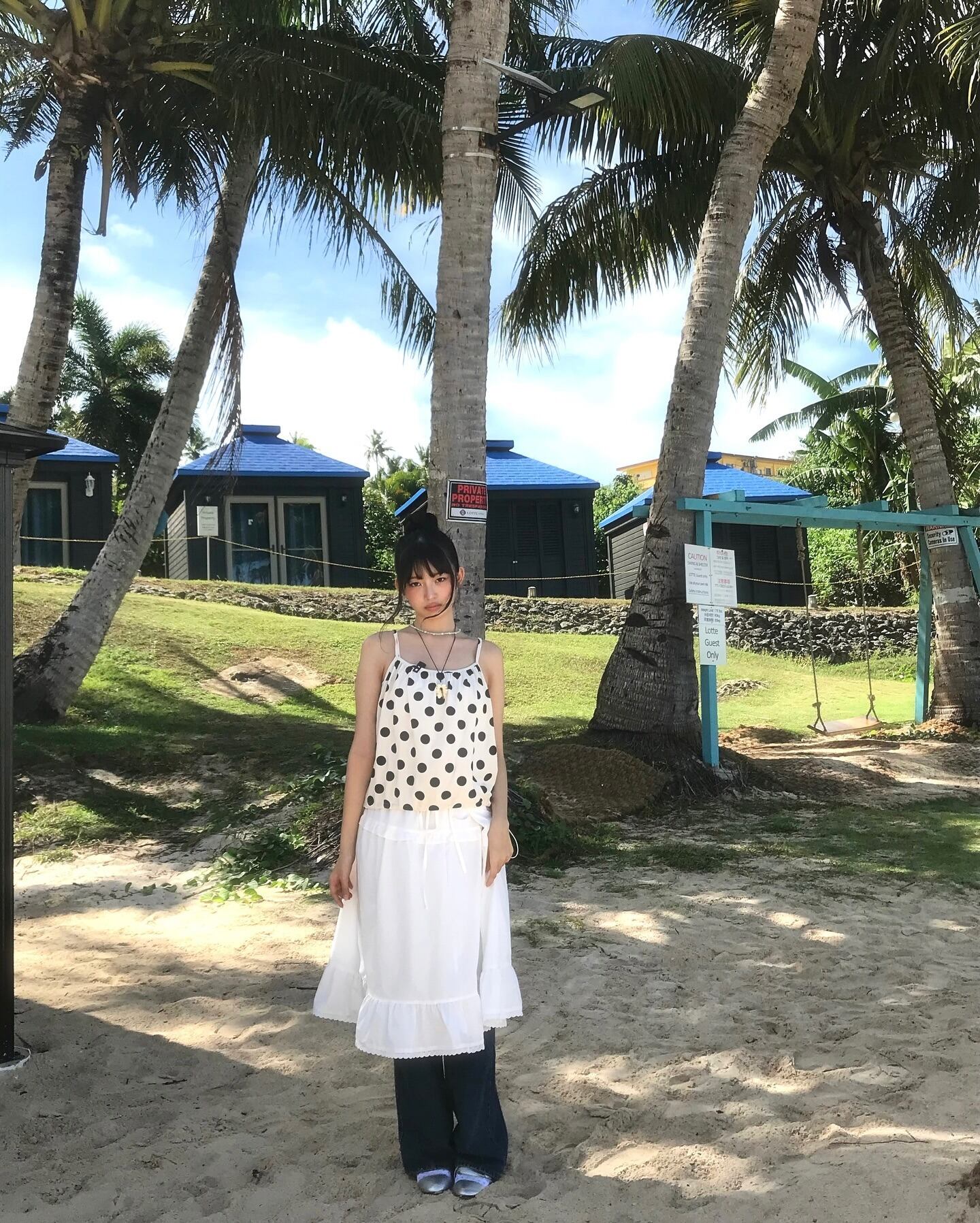 ★IVE レイ 着用!!【FUNFROMFUN】Polka Top (Ivory)