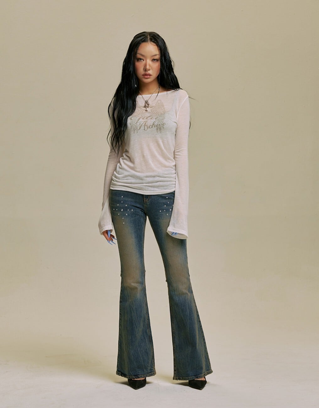 ★i-dle シュファ 着用!!【GILAARCHIVE】STAR WING SHEER LONG SLEEVE_WH