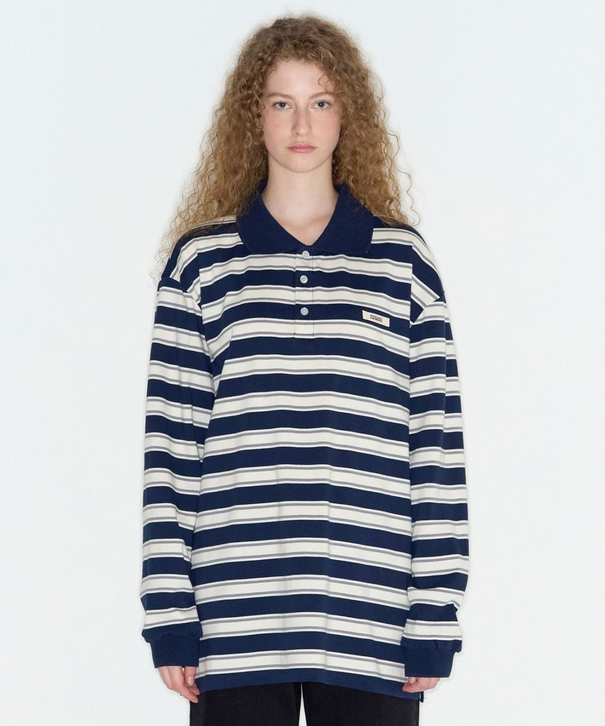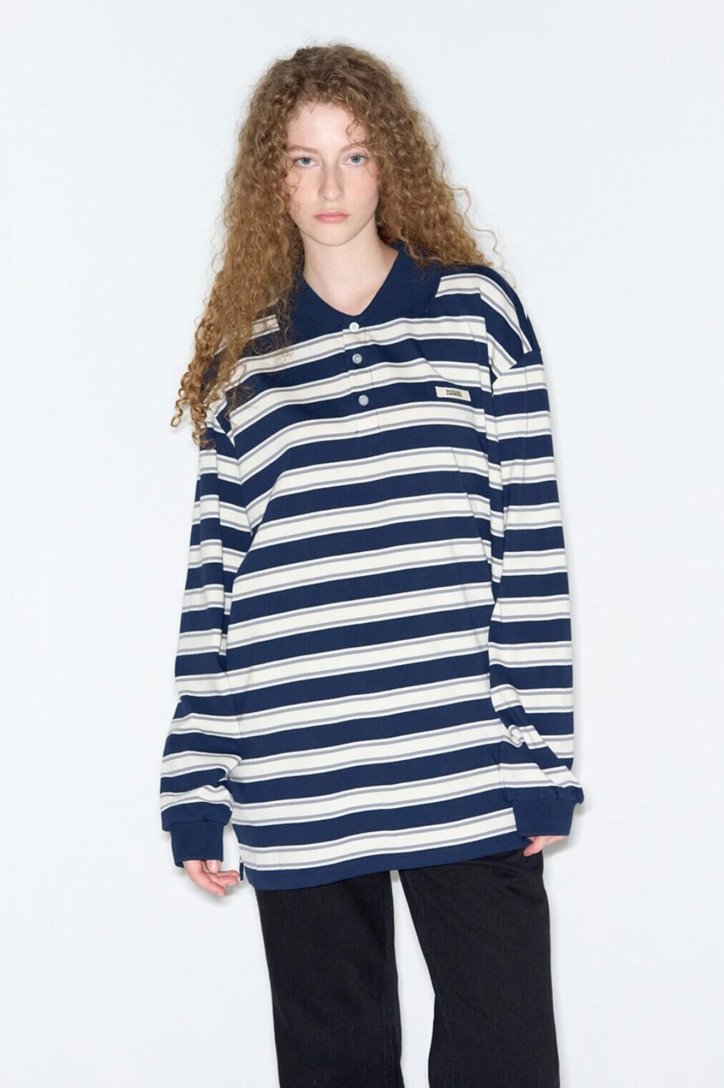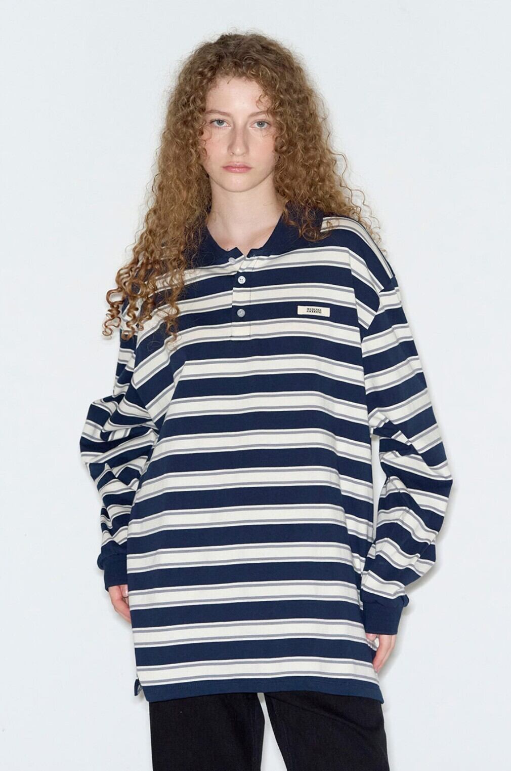 ★ILLIT ミンジュ 着用!!【ROCKCAKE】Striped Polo T-Shirt - Navy
