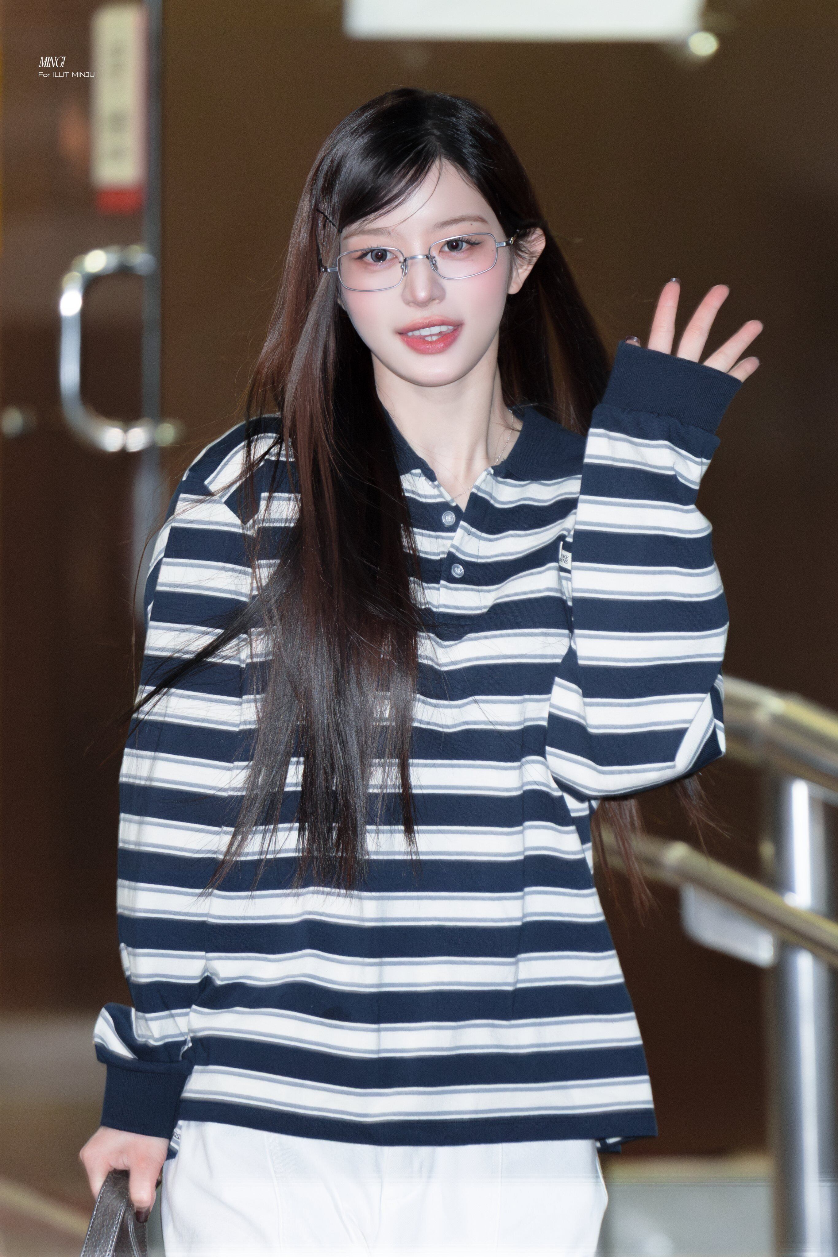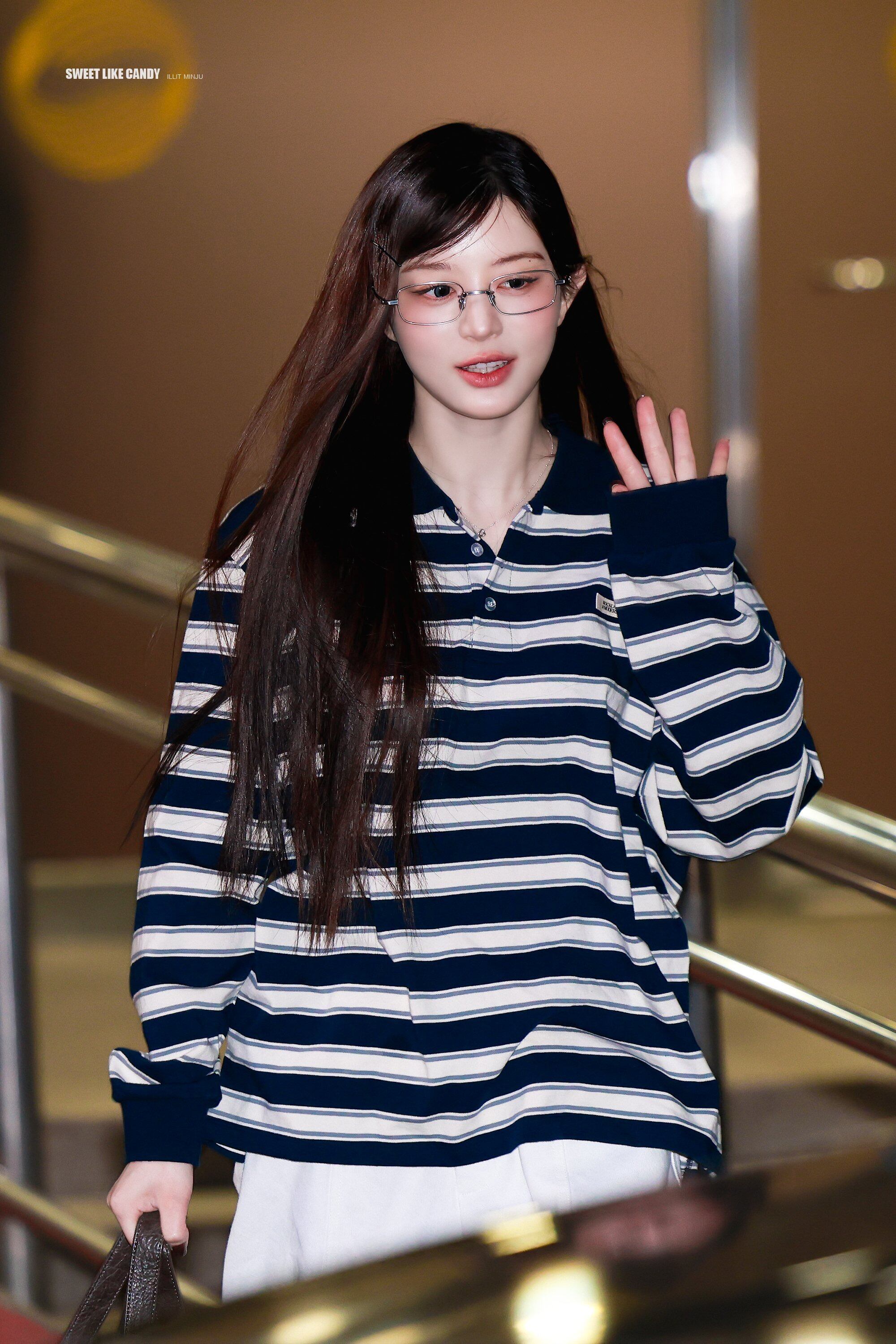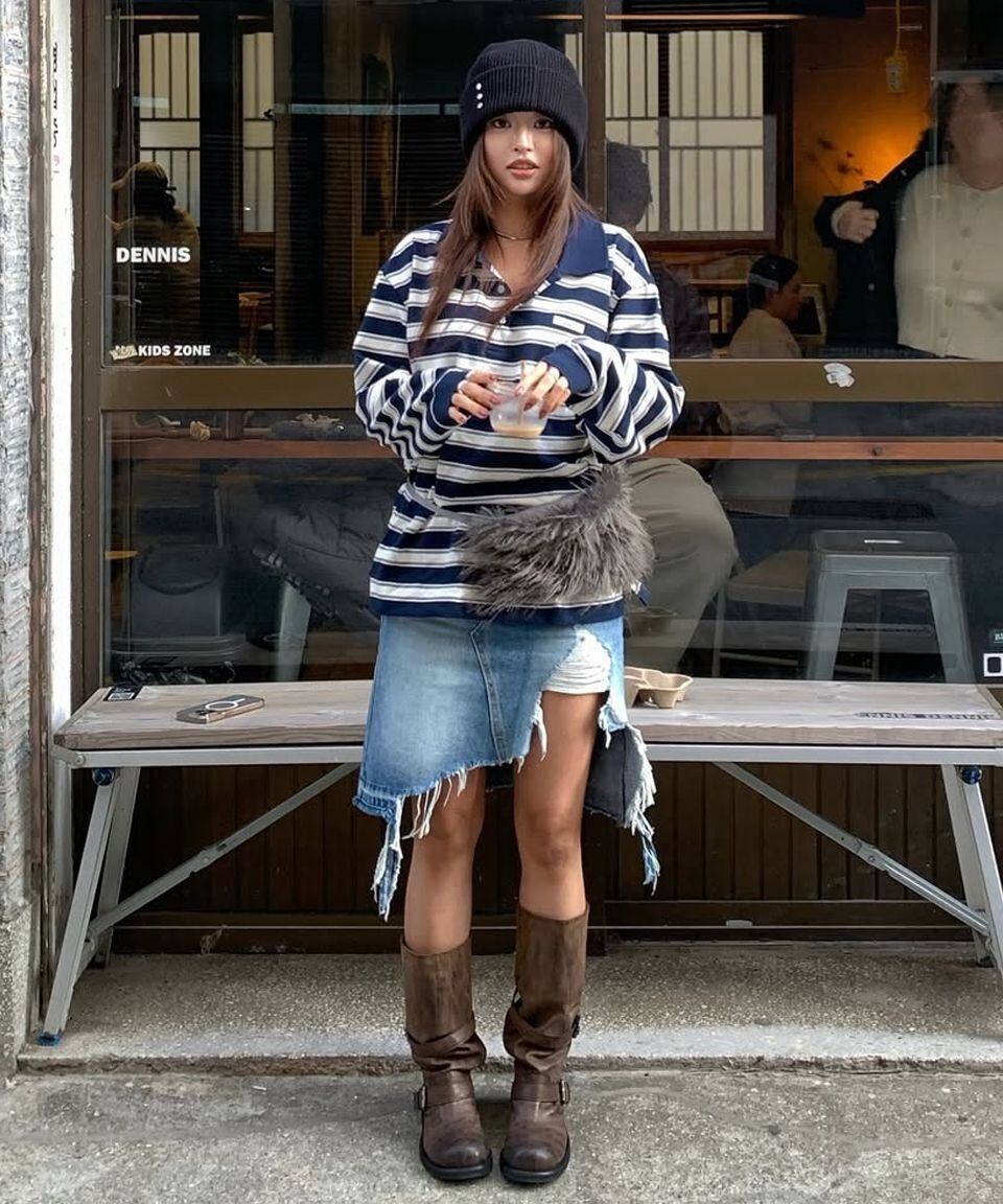 ★ILLIT ミンジュ 着用!!【ROCKCAKE】Striped Polo T-Shirt - Navy