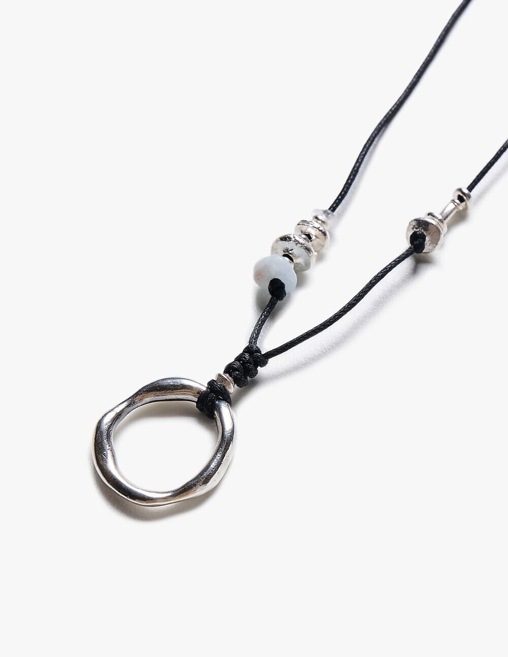 有機的なフォルムのラウンドシルバーペンダントに、カレンシルバーと天然石を組み合わせたネックレスです。