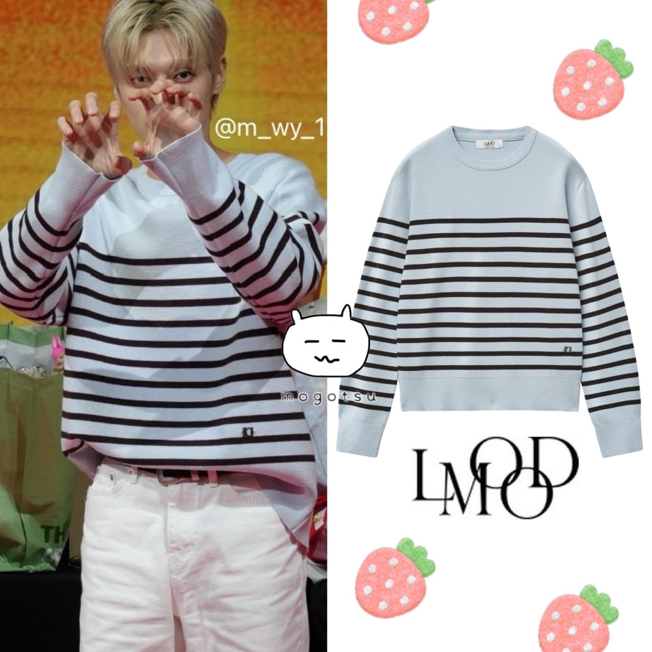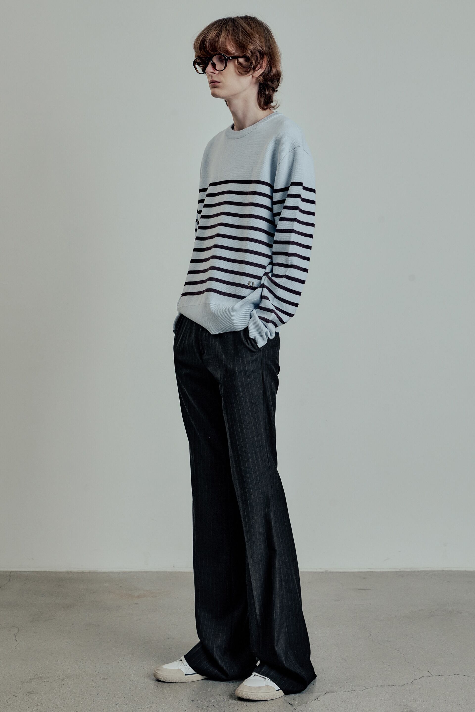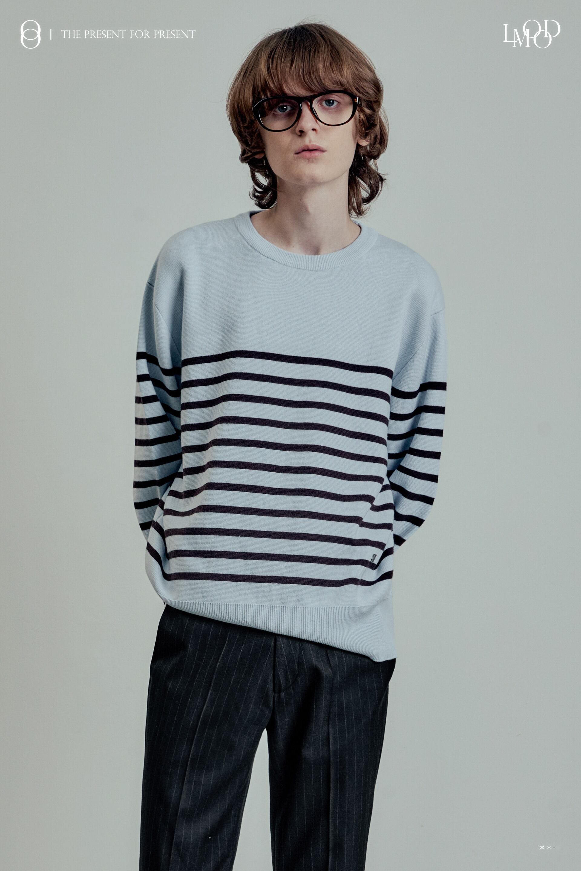 ★ATEEZ ウヨン 着用!!【LMOOD】Marine Wool-Cotton Stripe Pullover Knit - Sky Blue