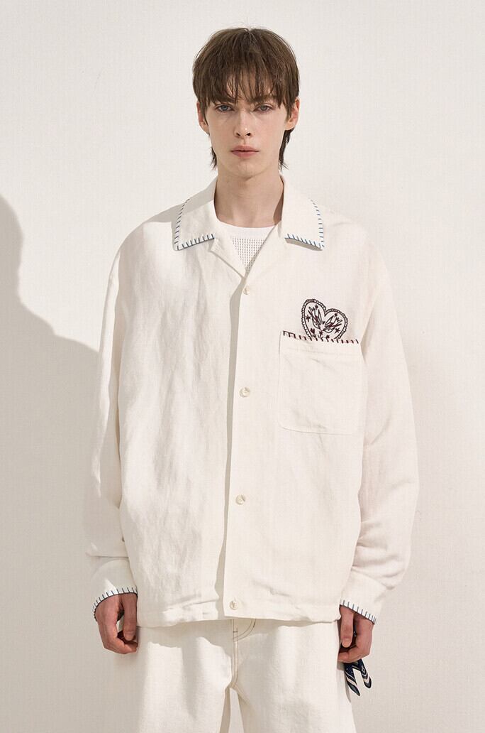 ★ ユク ソンジェ 着用!!【SYSTEM HOMME】Linen Blend Embroidery Shirt
