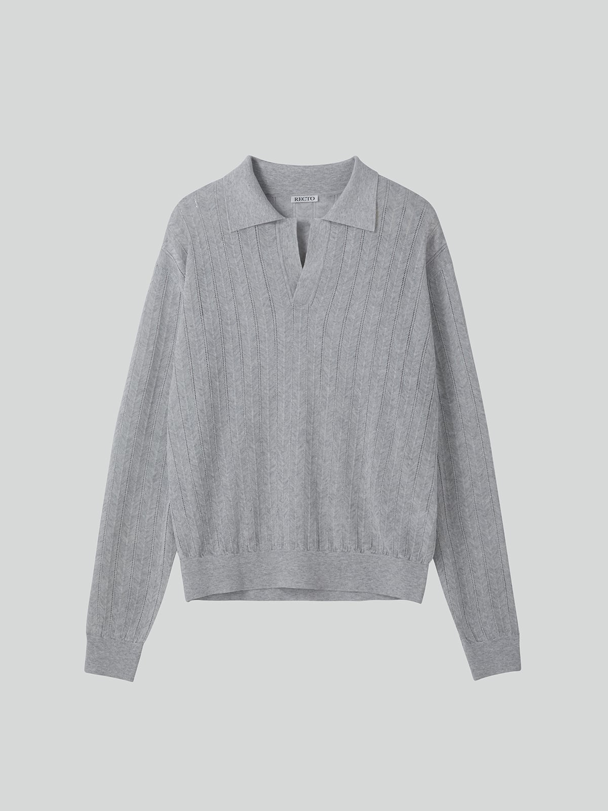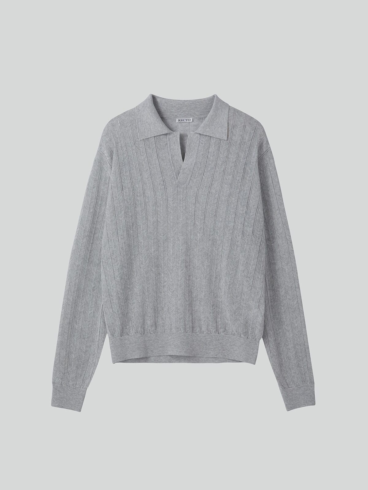 ★RIIZE ソンチャン 着用!!【RECTO】LACE RIB SHEER KNIT TOP (MELANGE GREY)