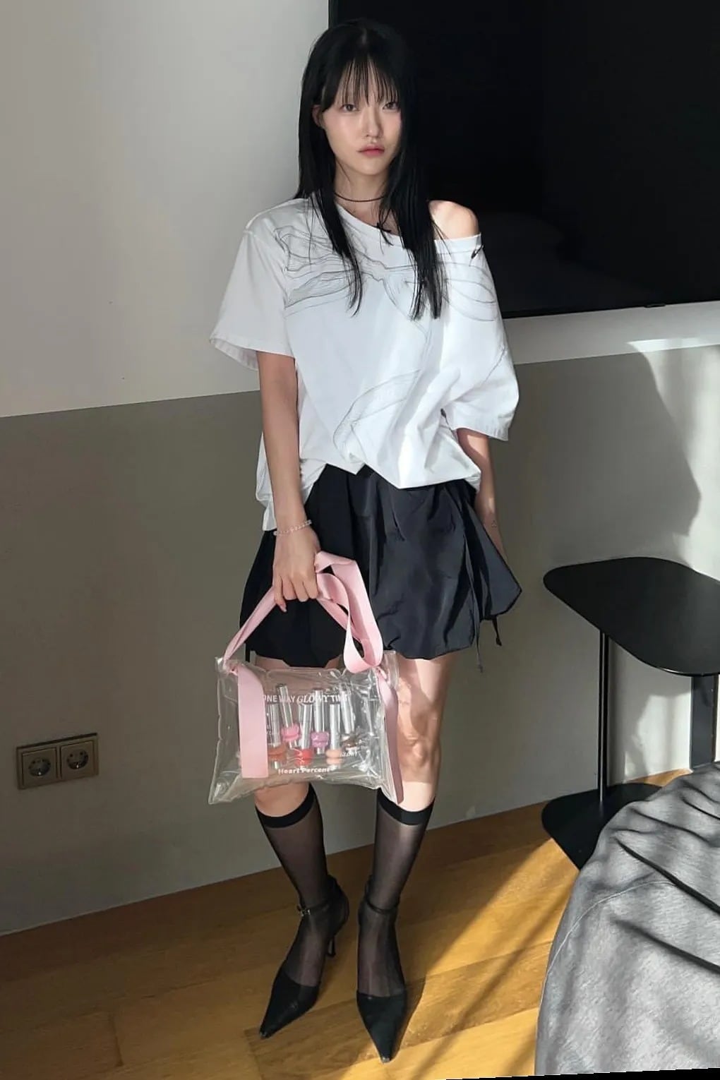 IVEのユジンも着用した注目の【TUOMIO】DAMAGED T-SHIRTS!ホワイトカラーの心地よい印象に、ダメージ加工が施されたユニークなデザインが特徴です。カジュアルなスタイルにも、ストリートファッションにもぴったりで、あなたのコーディネートに個性をプラスします!