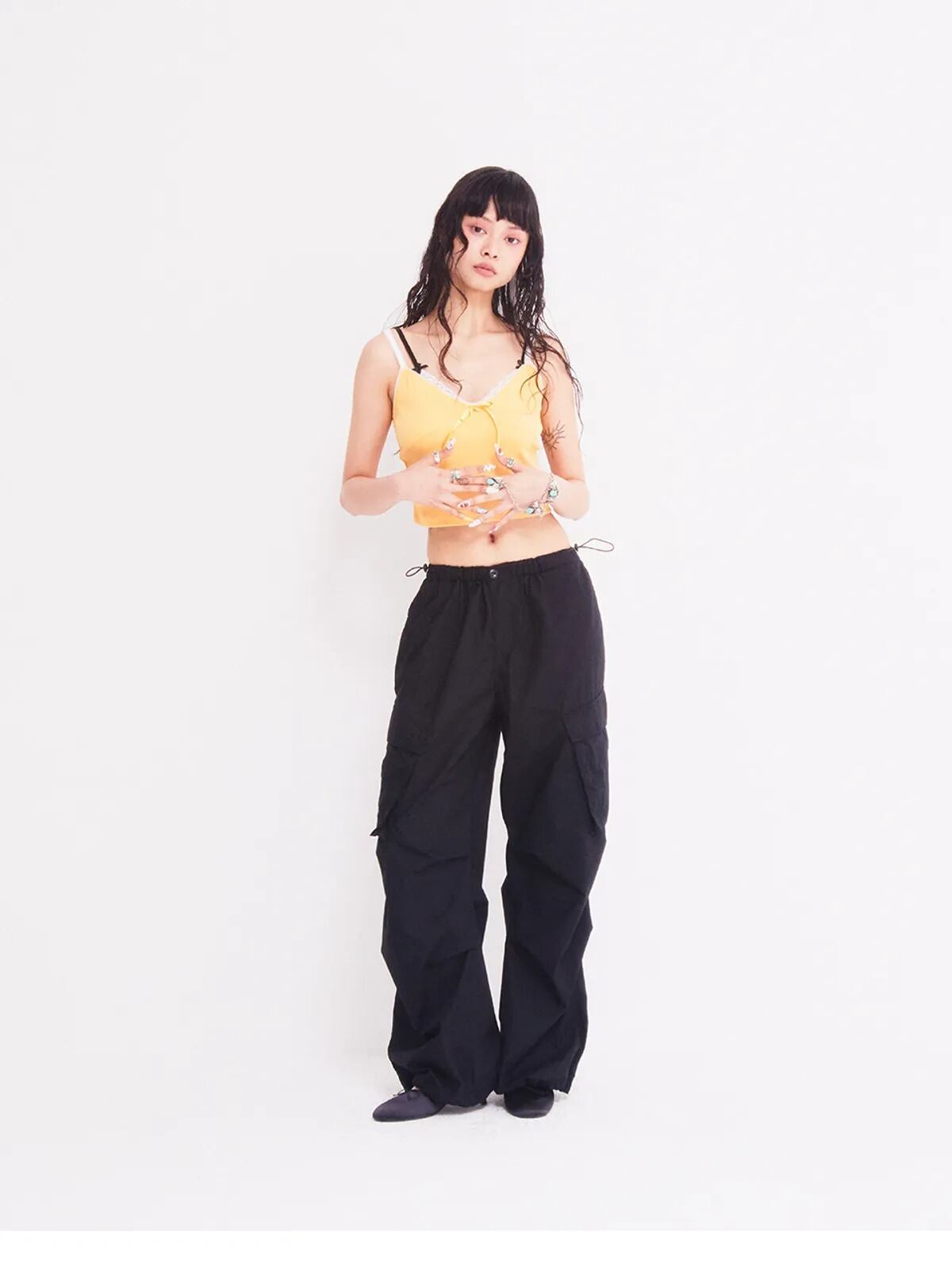 ★I-DLE シュファ 着用!!【ASIF CALIE】GIRLISH RIBBON LAYERED SLEEVELESS YELLOW