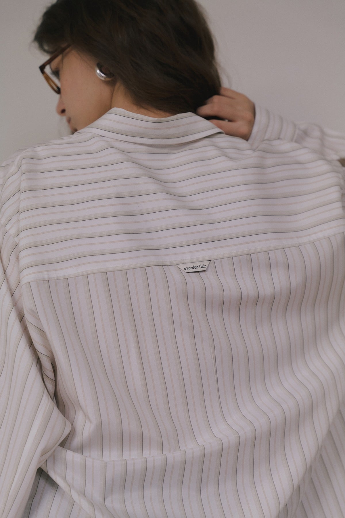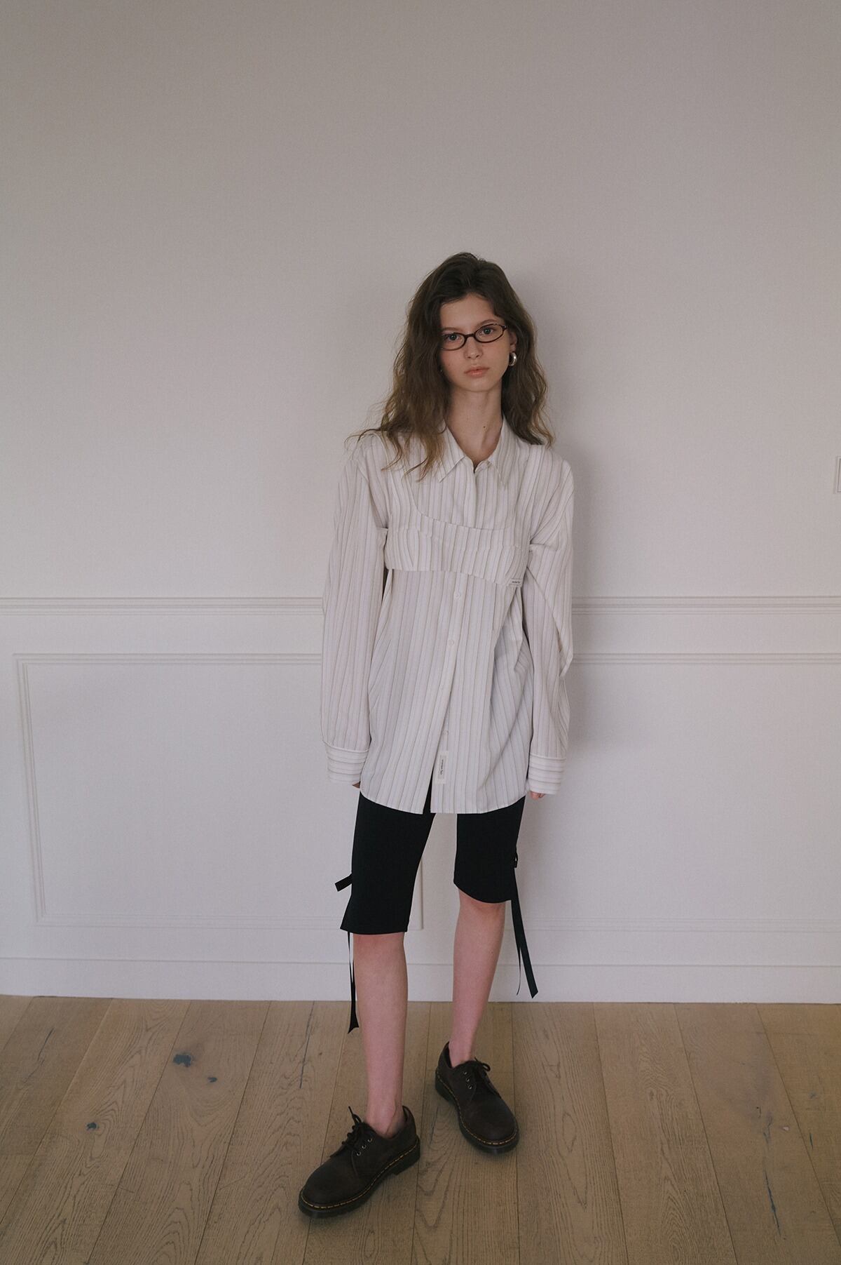 ★LE SSERAFIM ユンジン 着用!!【OVERDUEFLAIR】COTTON OVERSIZED SHIRTS_IVORY STRIPE