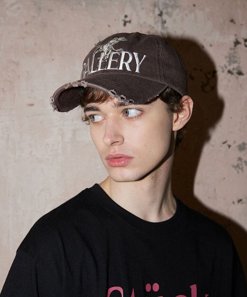 つば部分にはダメージ加工が施され、ヴィンテージな雰囲気を演出します。