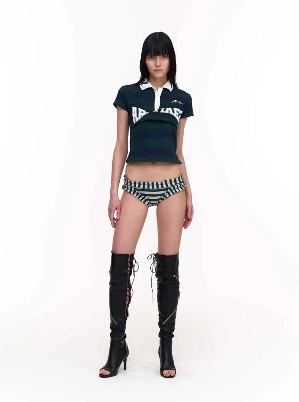 ビッグボールドストライプ生地で製作された夏のシーズンPKトップ