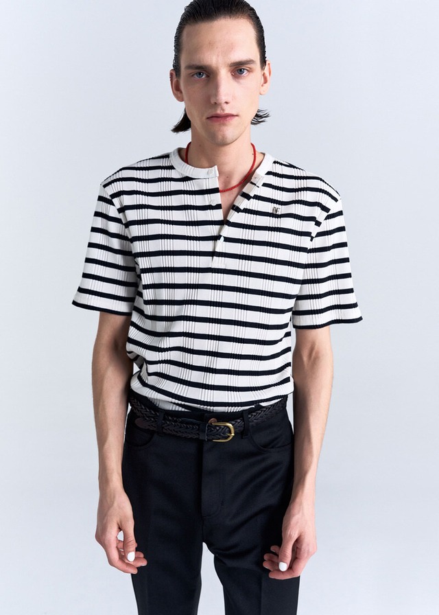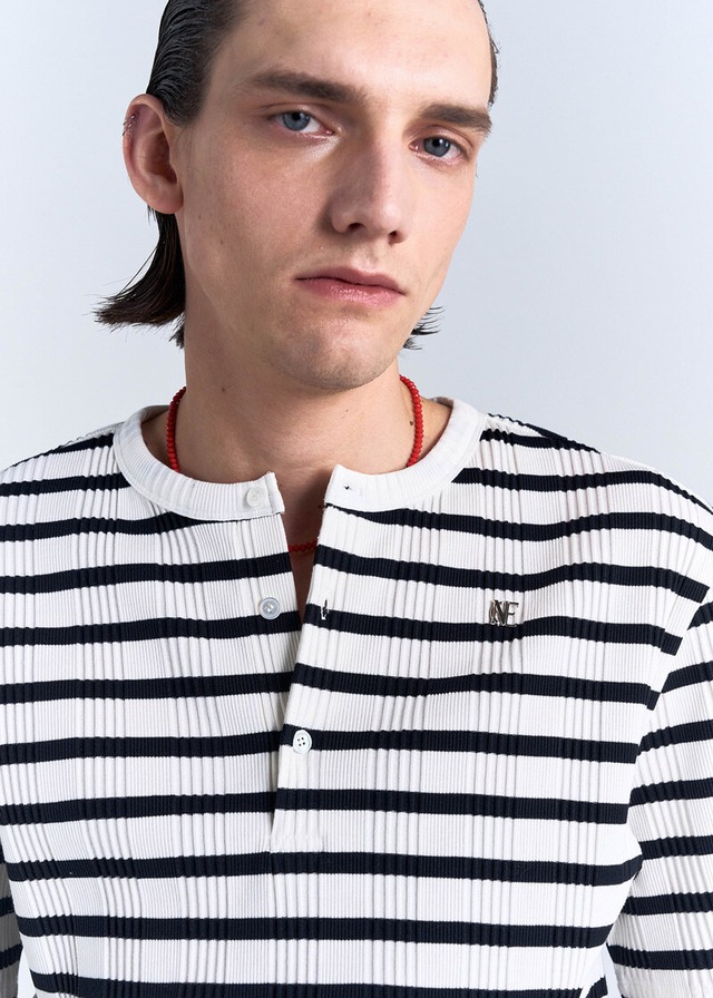 ★SEVENTEEN スングァン 着用!!【NOICE】COTTON RIBBED HENLEY NECK - STRIPE