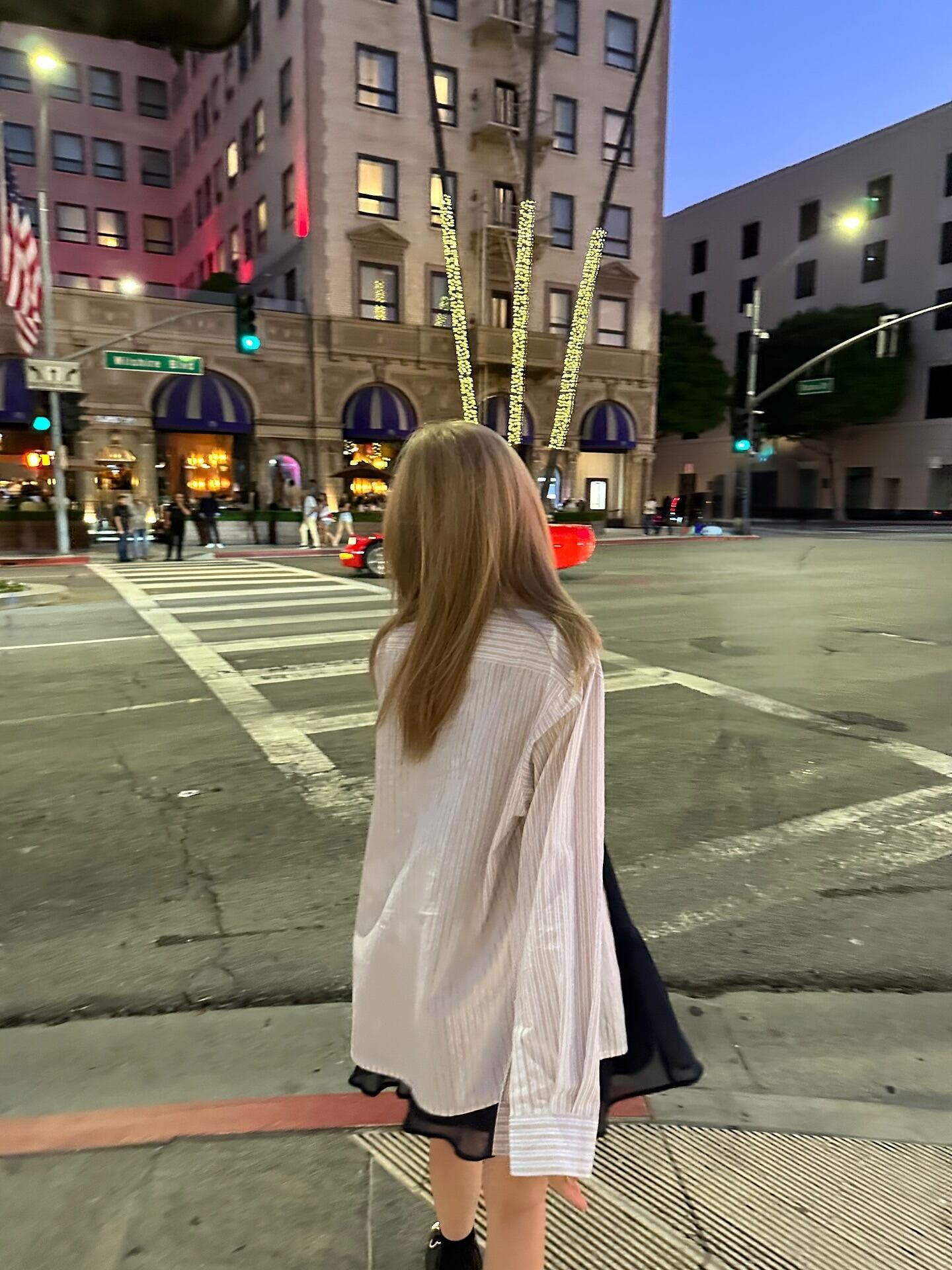 リラックス感のあるオーバーサイズフィットとカーブヘムがミニマルな印象を与えます。