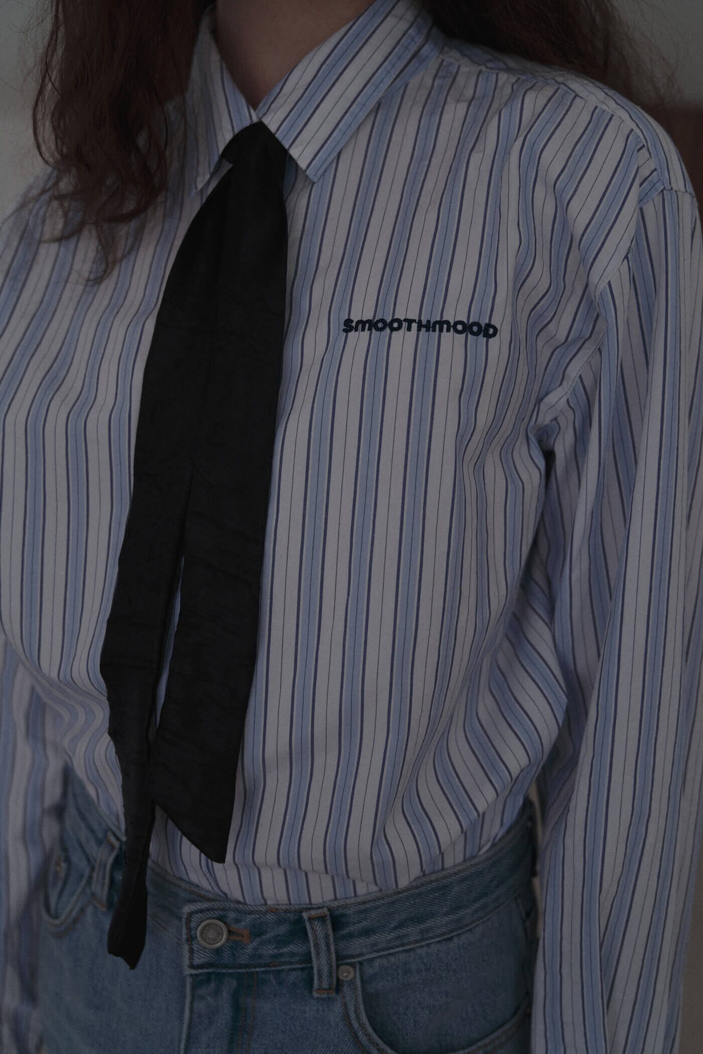 スムードムードのシグネチャーアーカイブから始まった「アバディーンロゴリンクルストライプシャツ」です。