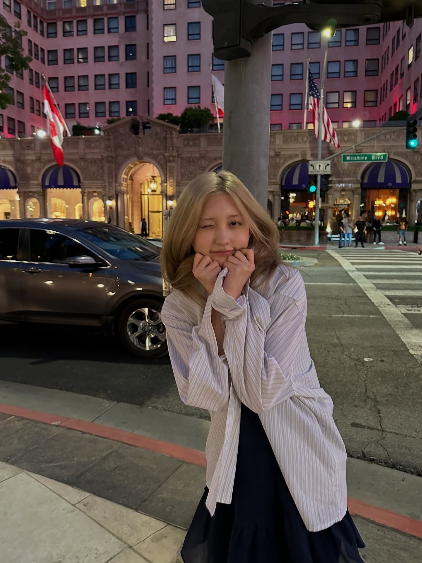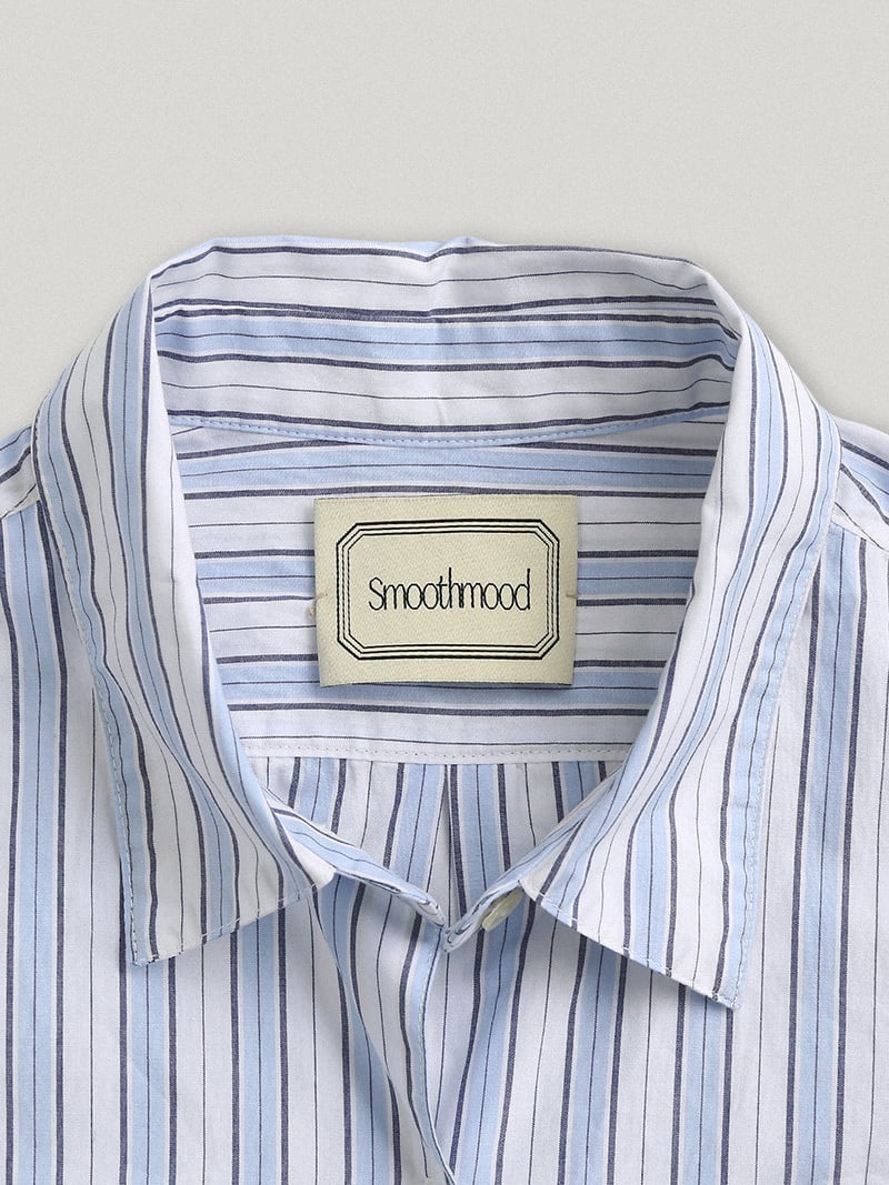 (6th)★IVE ガウル 着用!!【Smoothmood】Aberdeen Logo Striped Shirts Classic Blue