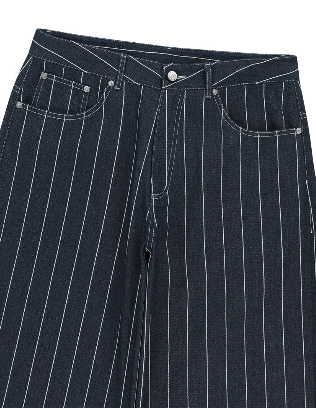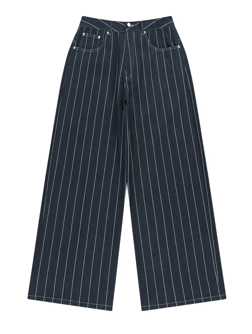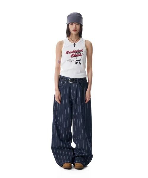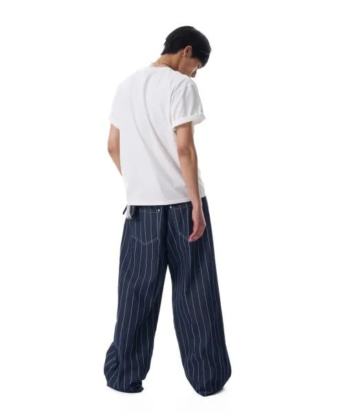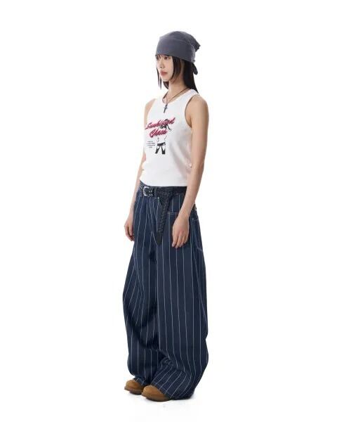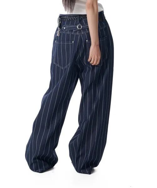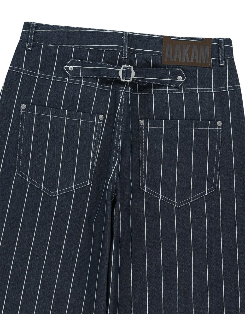 ★aespa カリナ 着用!!【AAKAM】Striped Cinch Back Denim Pants (Blue)