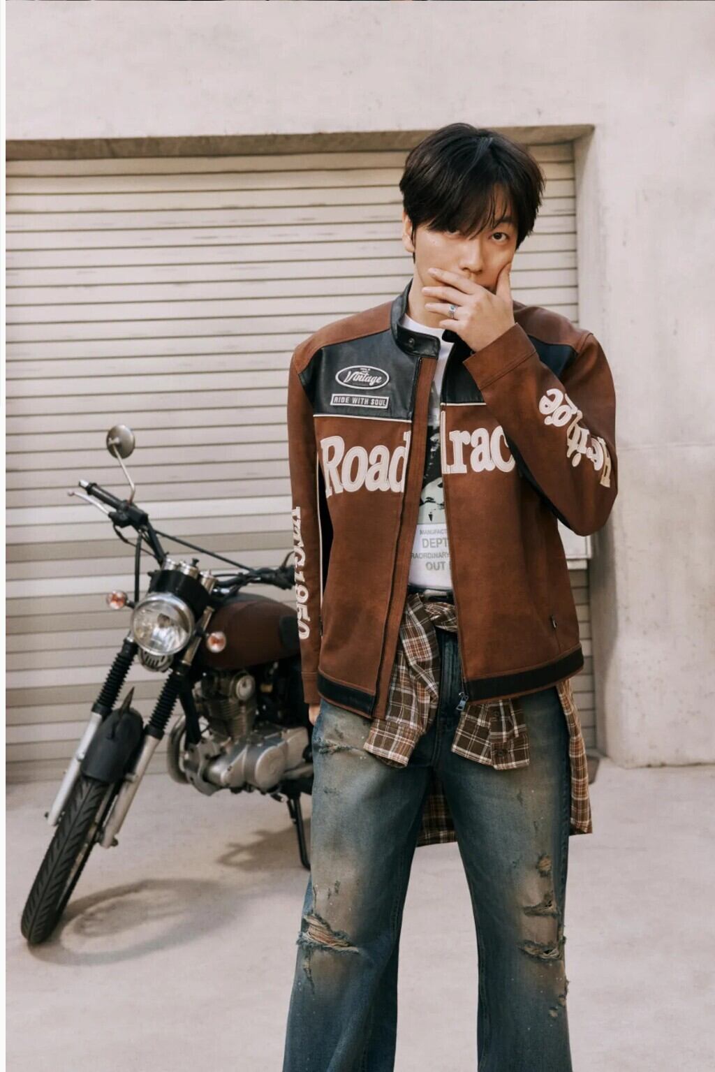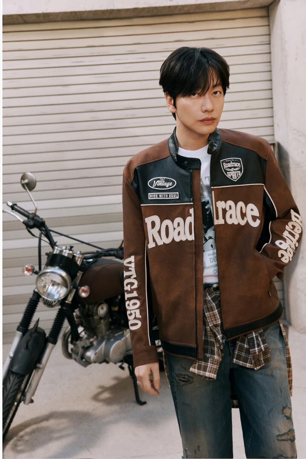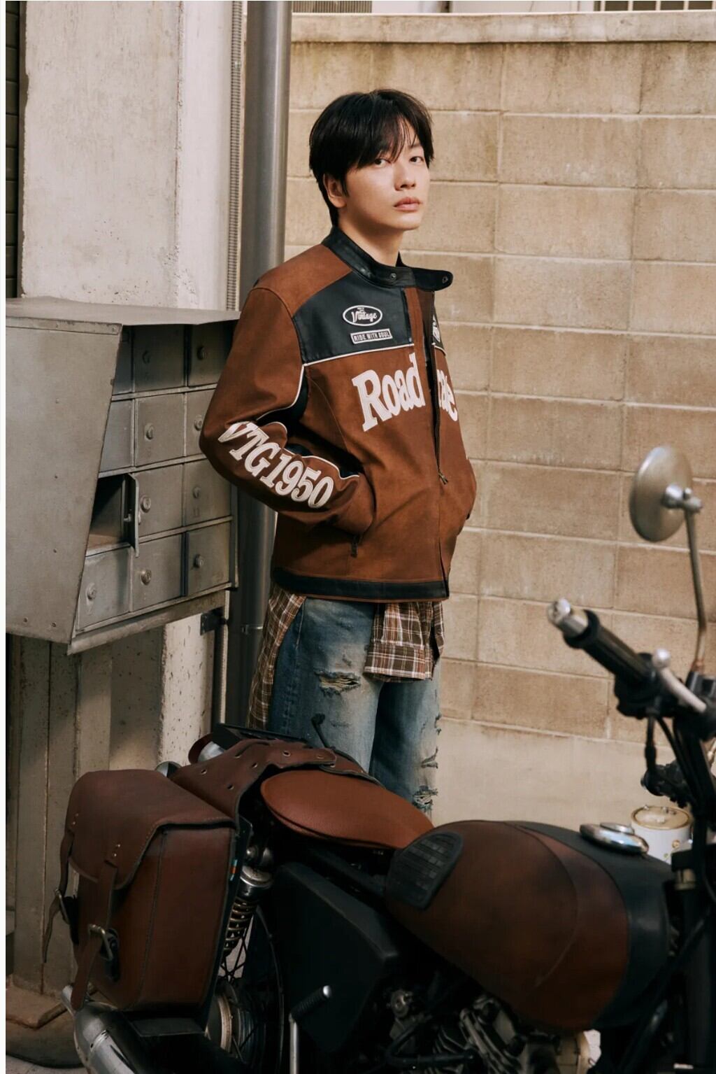 在庫少なめ!★TWICE ジヒョ 着用!!【BUCKAROO】artificial leather suede coloring rider jacket brown