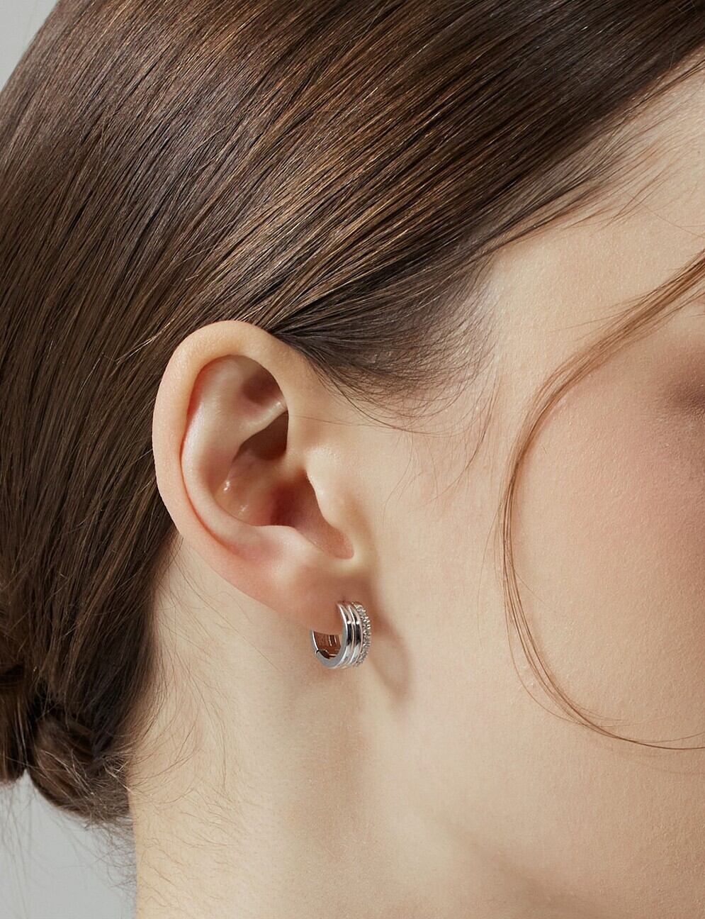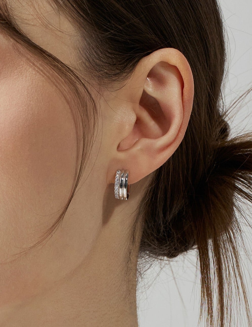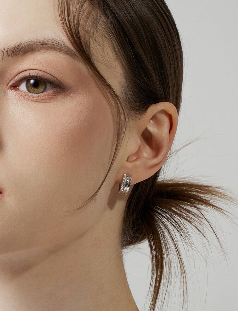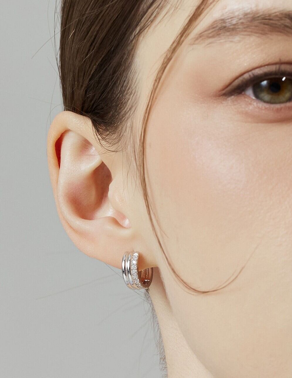 3本のラインと綺麗なストーンポイントが施されたラウンド型ピアス。
