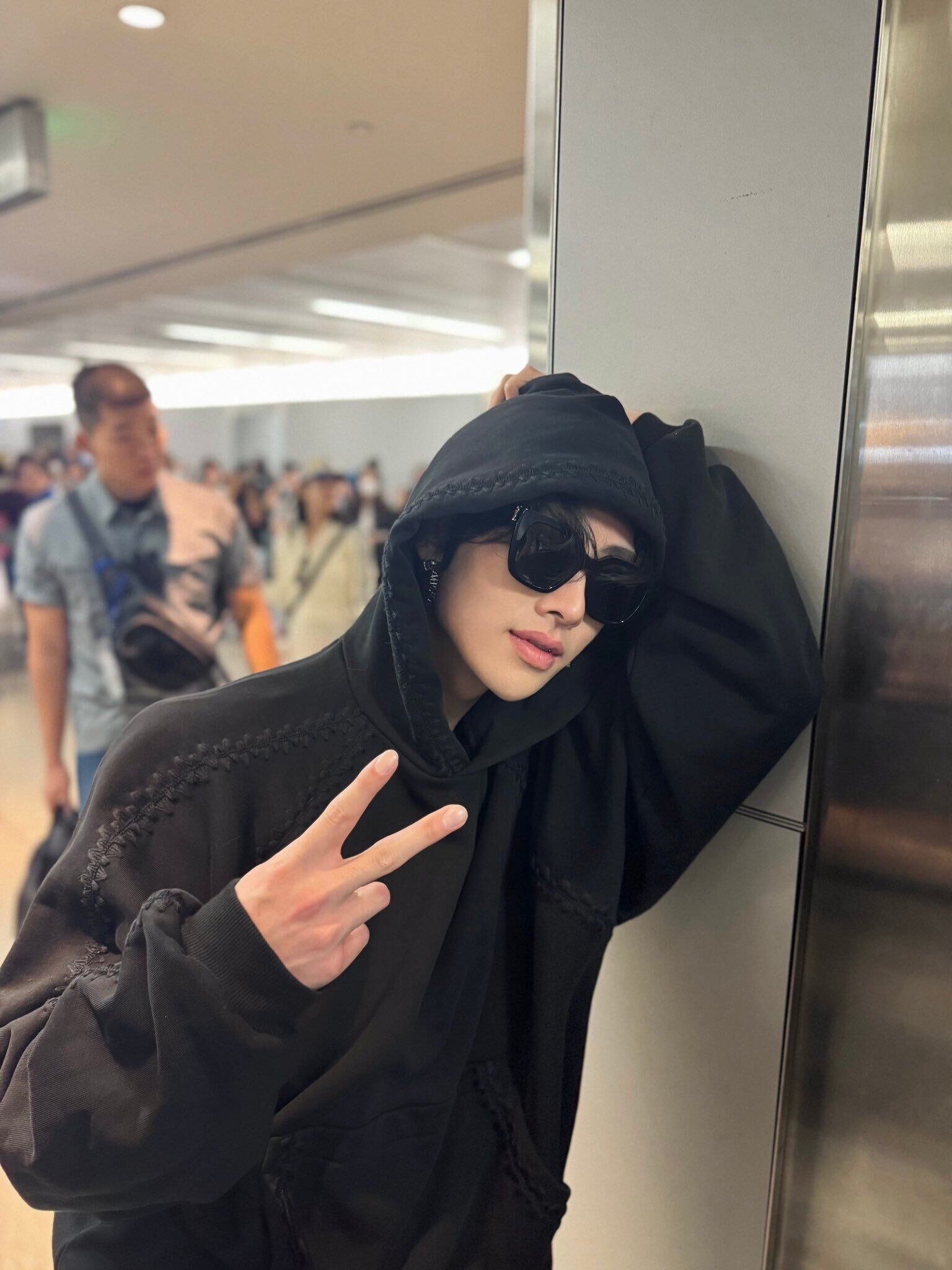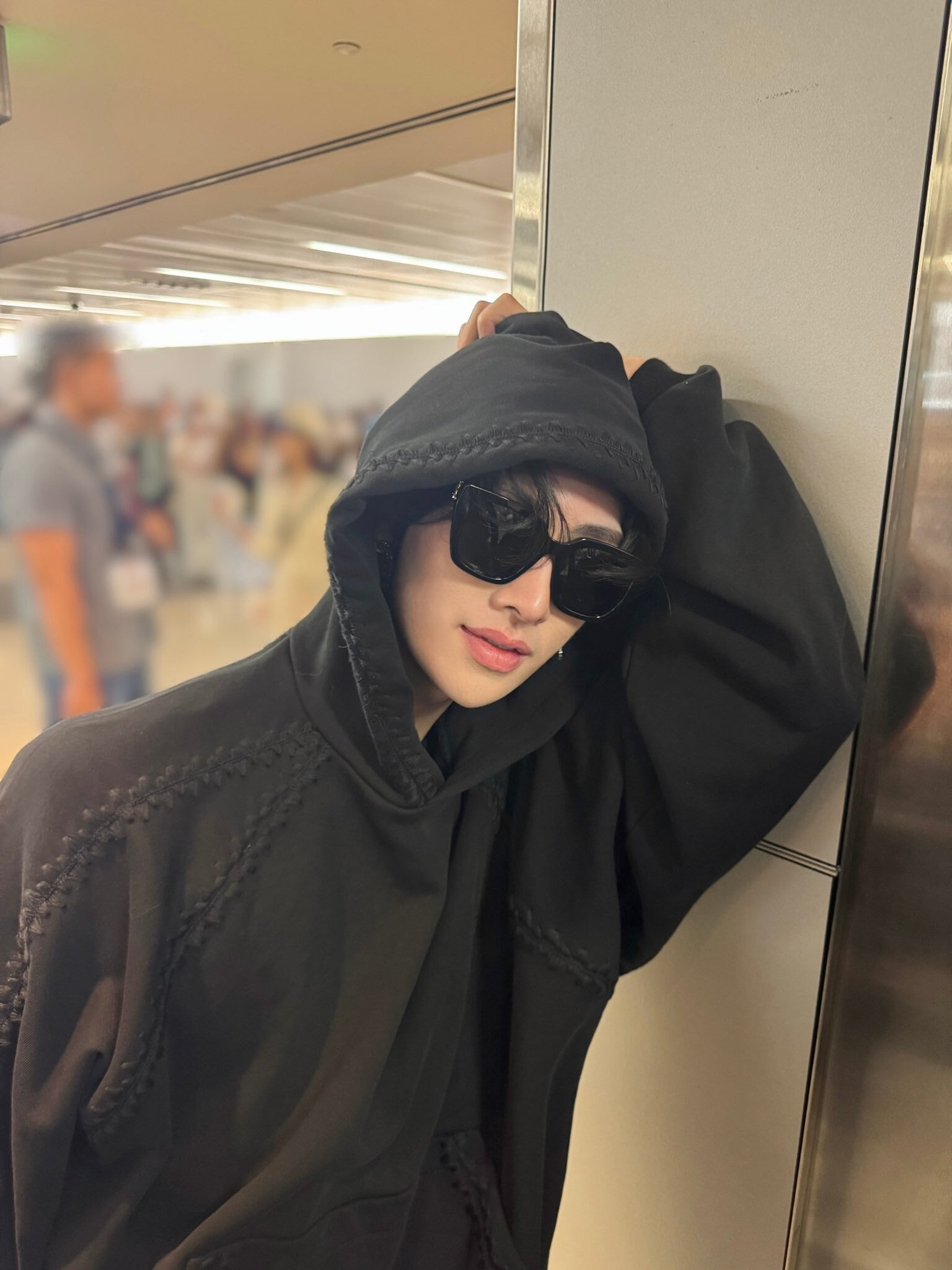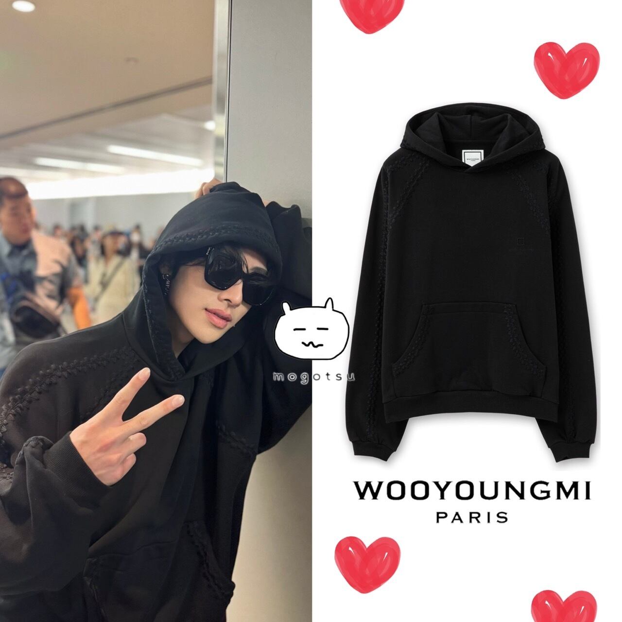 ★ZEROBASEONE リッキー 着用!!【WOOYOUNGMI】Black line embroidered hooded T-shirt