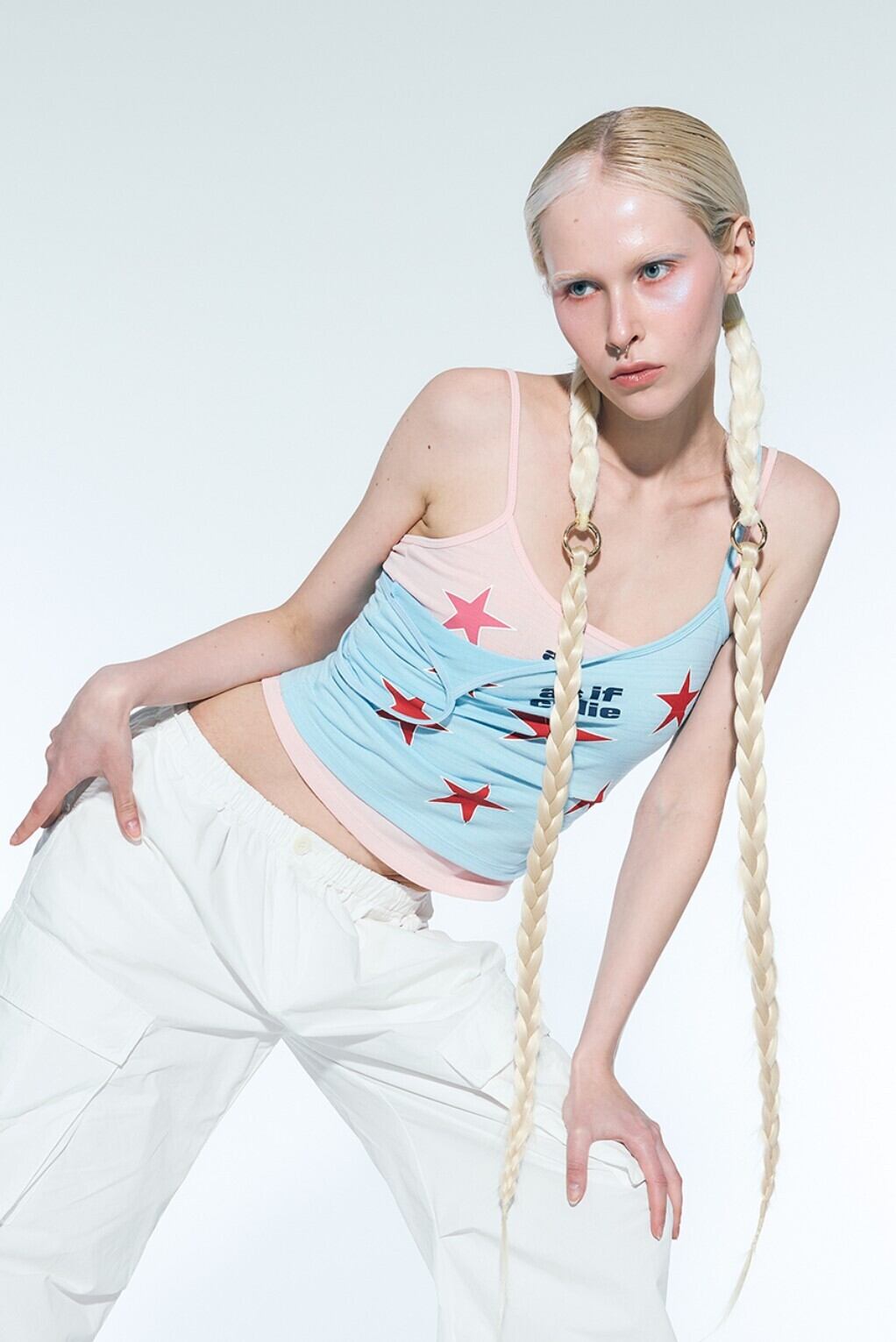 ★Red Velvet ジョイ 着用!!【asif CALIE】SHIRRING STAR SLEEVELESS TOP PINK