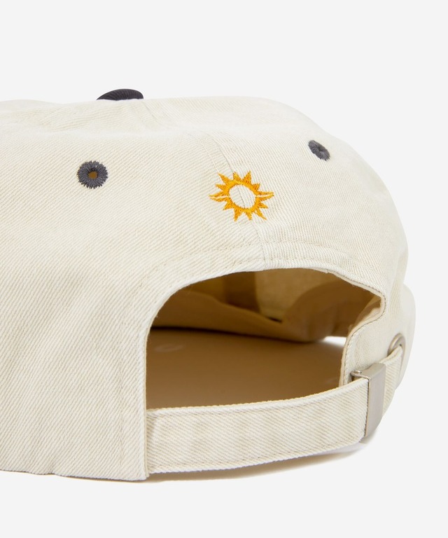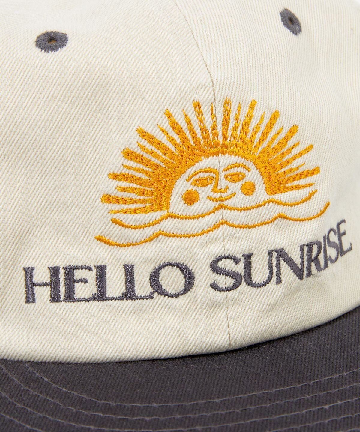 ヘルロサンライズオリジナルロゴとグラフィックをツートンカラー刺繍で仕上げた6パネルキャップ