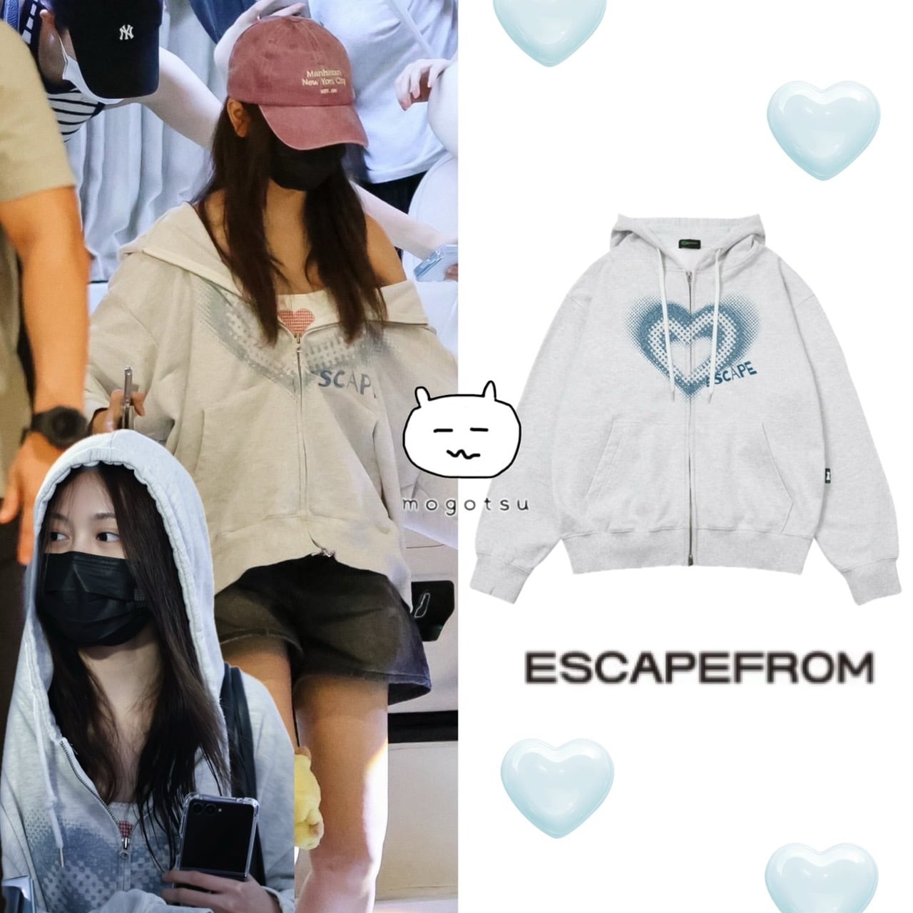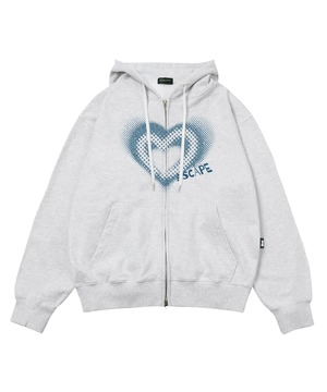 ★Hearts2Hearts カルメン 着用!!【ESCAPEFROM】Blue Bling Heart Print Two-Way Hooded Zip-Up White Melange