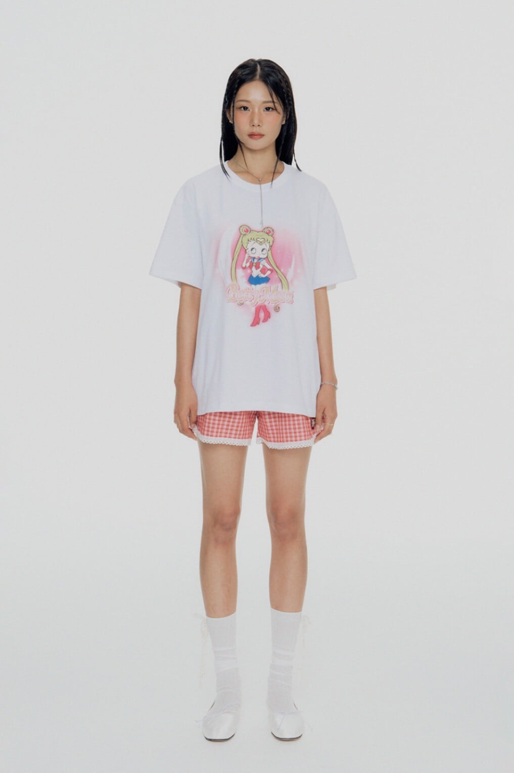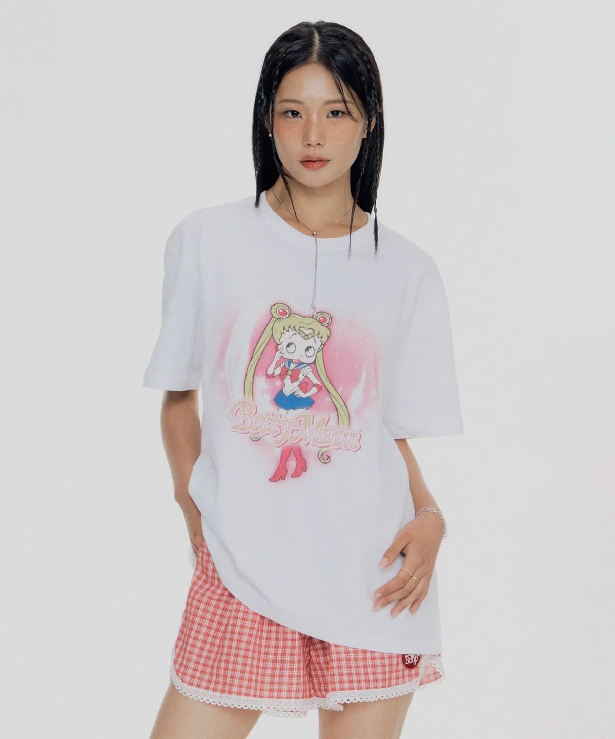 ★TWICE サナ 着用!!【ULKIN CANVAS】Betty Boop Betty Moon Oversized Fit T-shirt_White