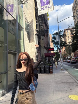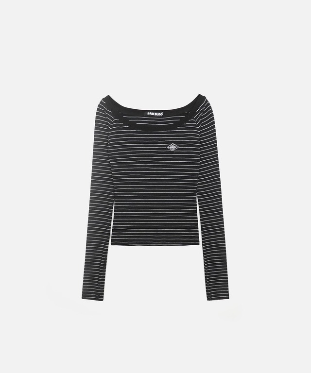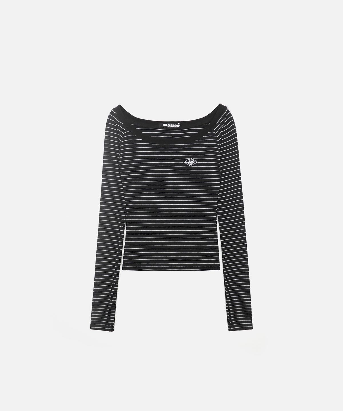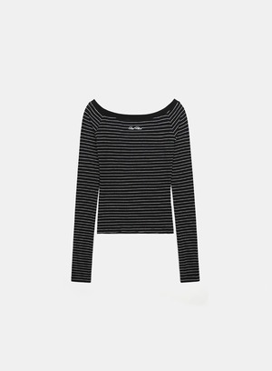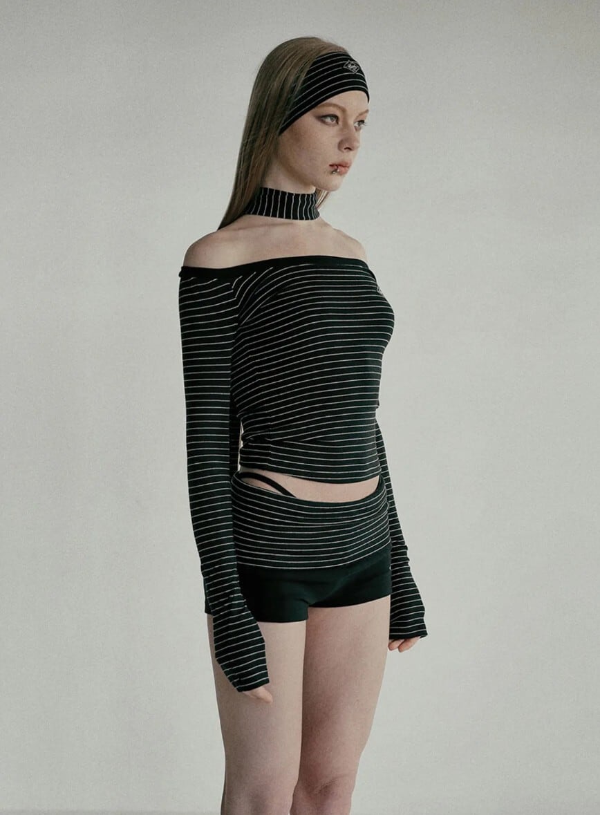 ★LE SSERAFIM ウンチェ 着用!!【BADBLOOD】Beyond Soft Off-Shoulder Top - Stripe Black