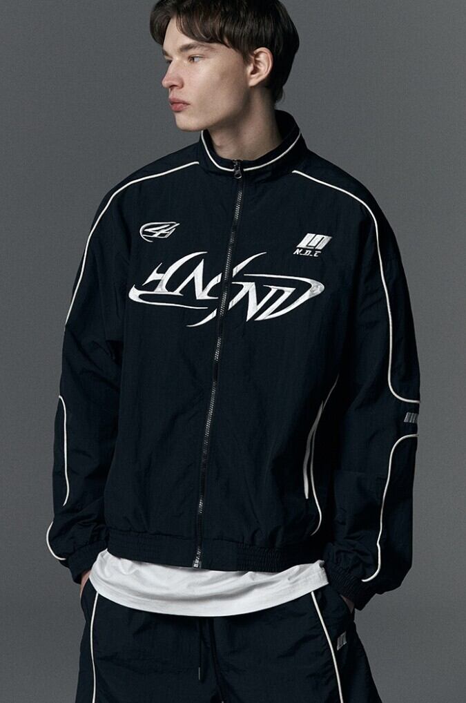 ★TXT テヒョン 着用!!【NOT4NERD】Tribal Logo Nylon Racing Jacket - Black