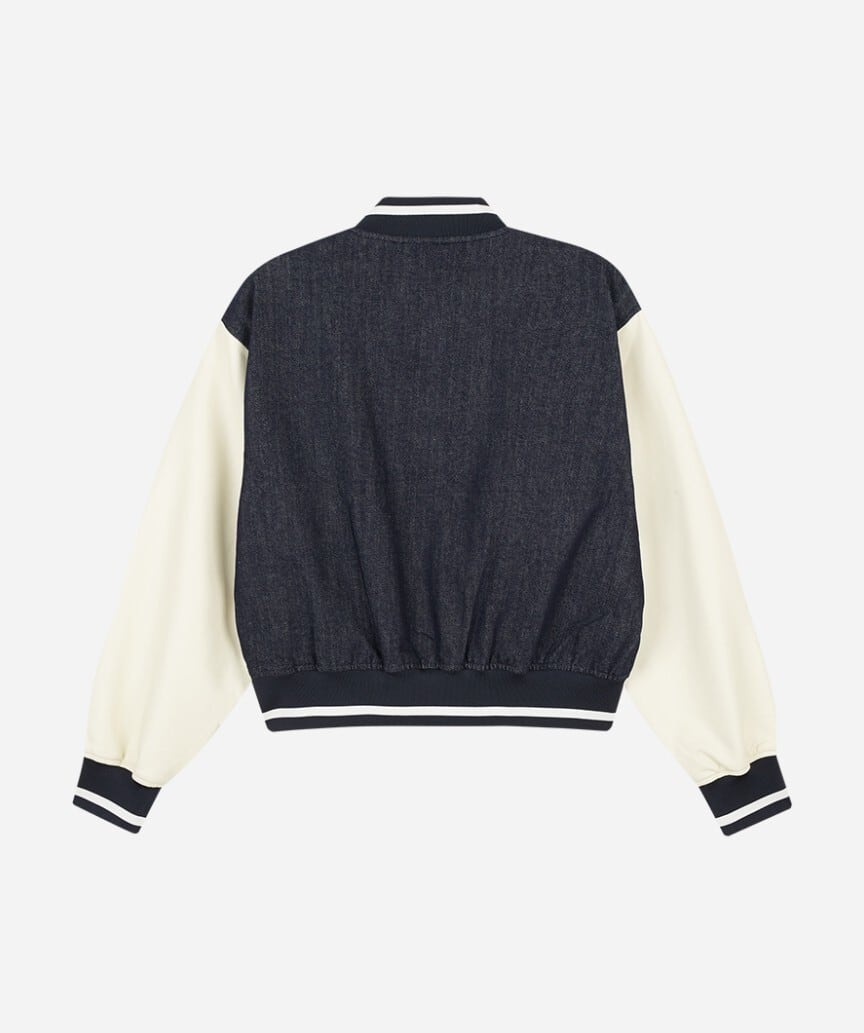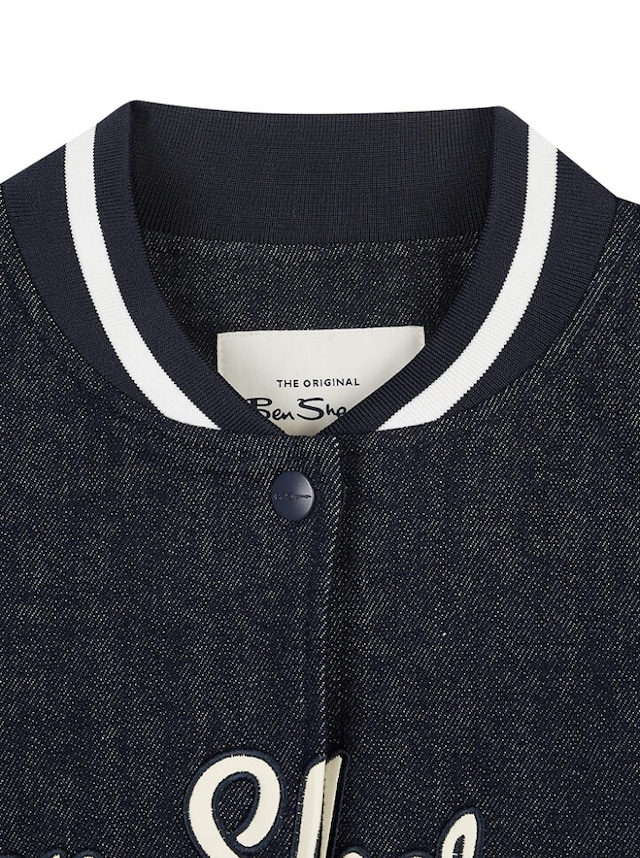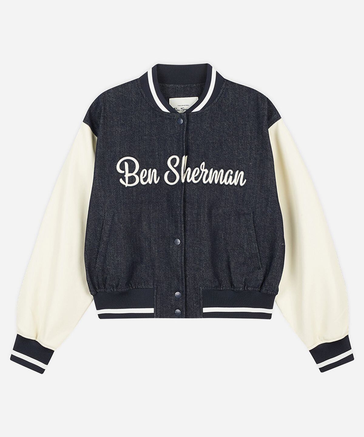 ★BOYNEXTDOOR リウ 着用!!【BEN SHERMAN】Woman Embroidery Logo Denim Varsity Jacket Indigo