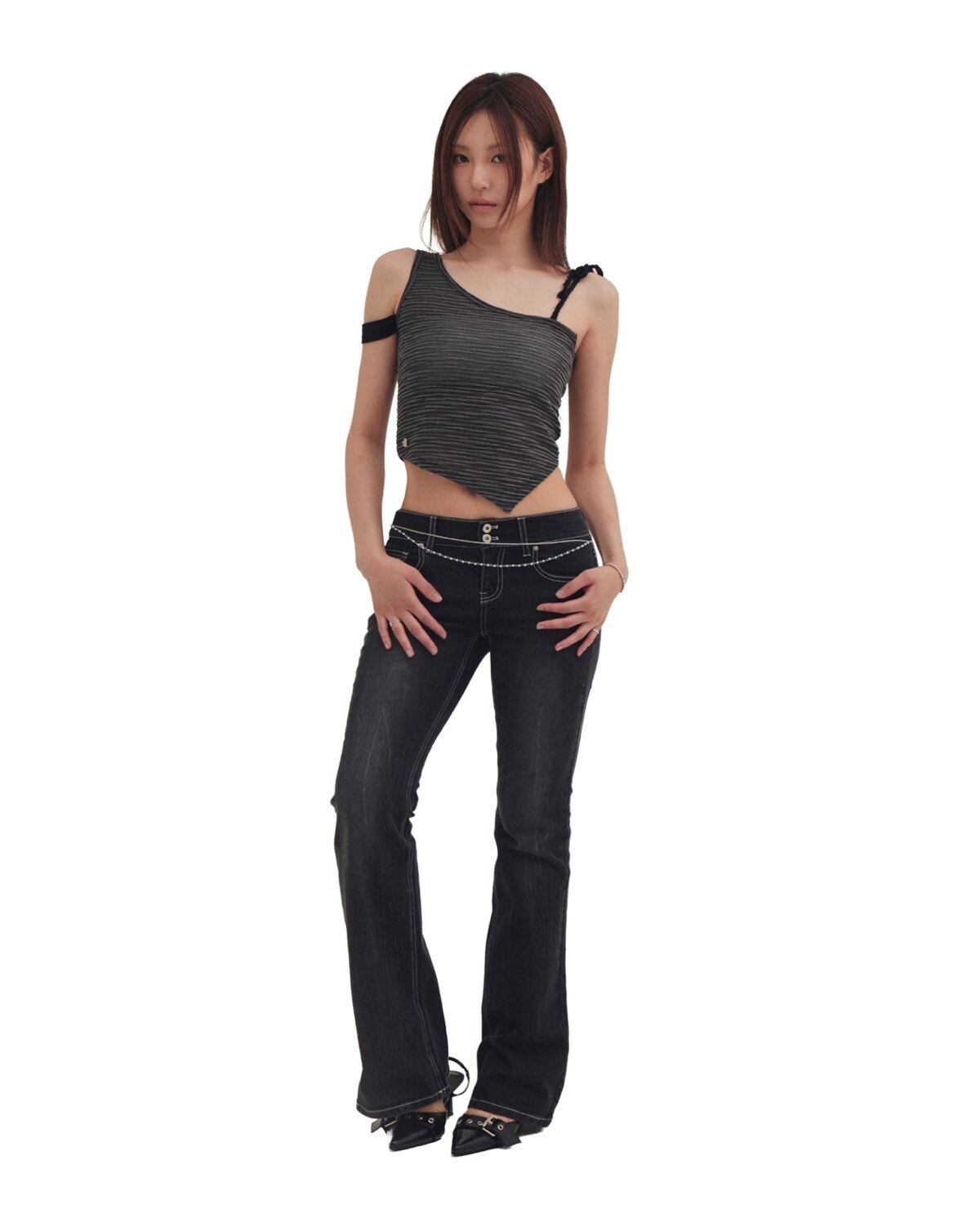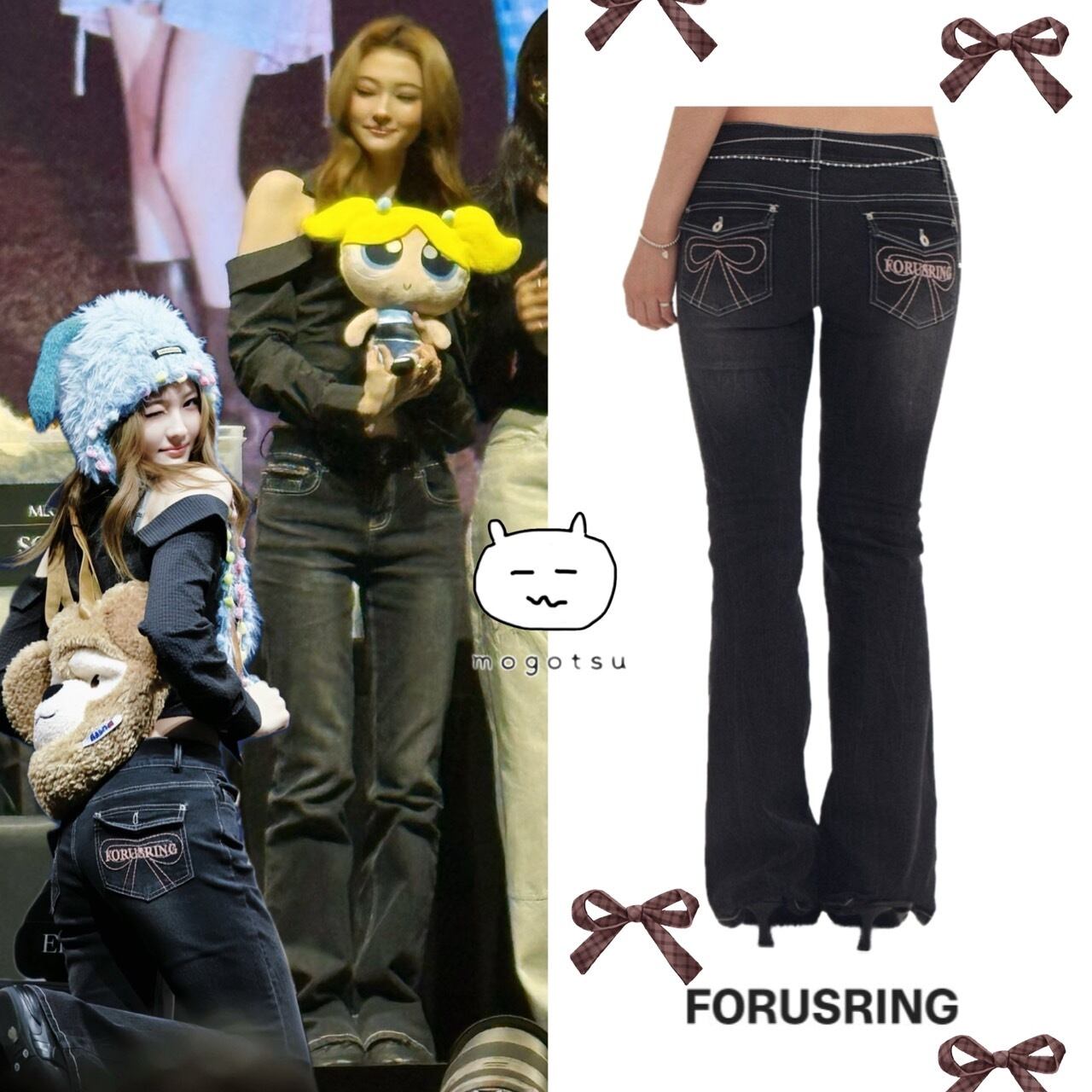 ★MEOVV エラ 着用!!【FORUSRING】Ribbon stitch bootcut jeans (dark grey)